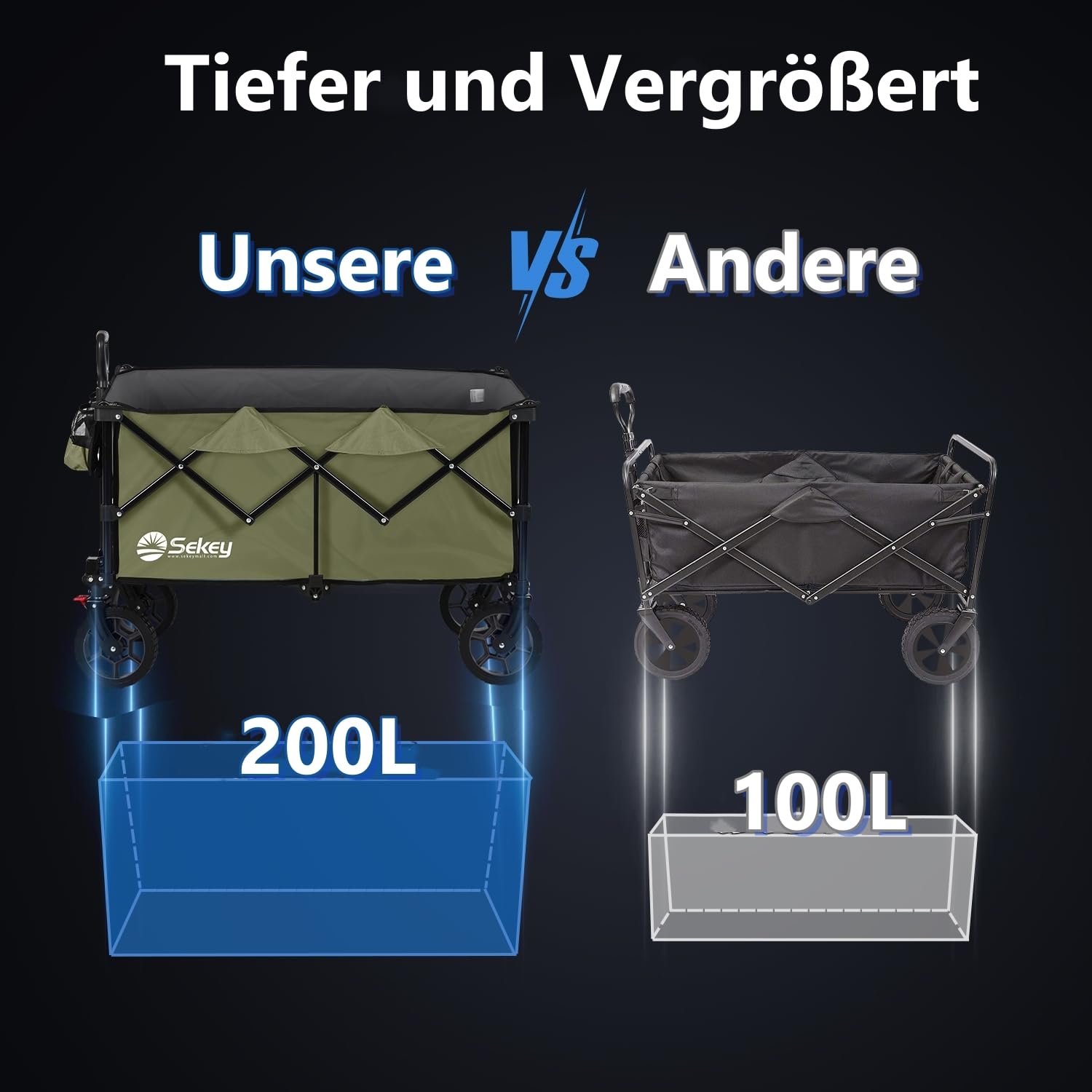 Sekey XXL Plus Bollerwagen Faltbar 200L – Olivgrün Geländetauglich