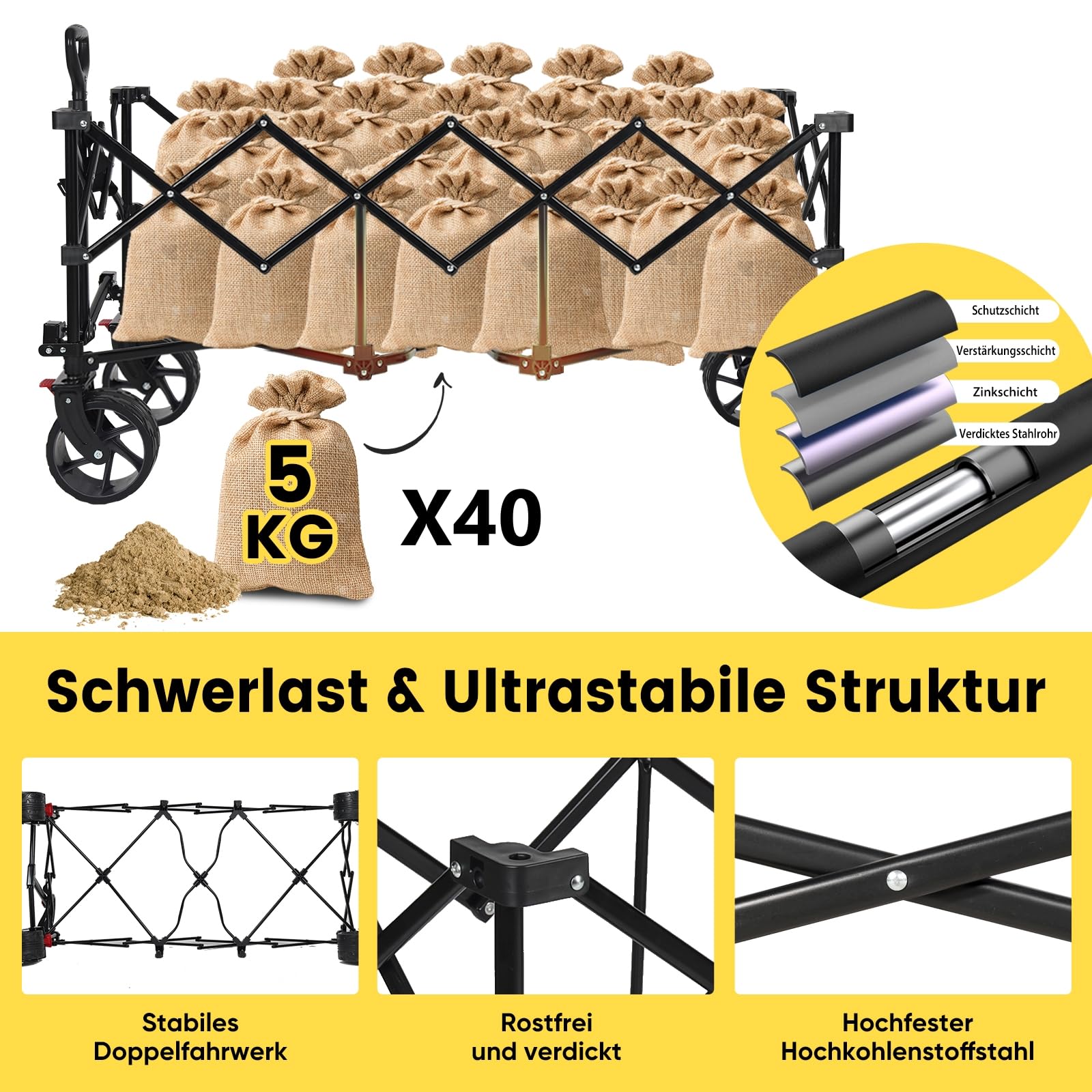 Sekey XXXL-Super 4013 Bollerwagen faltbar - breite Reifen, Schwarz
