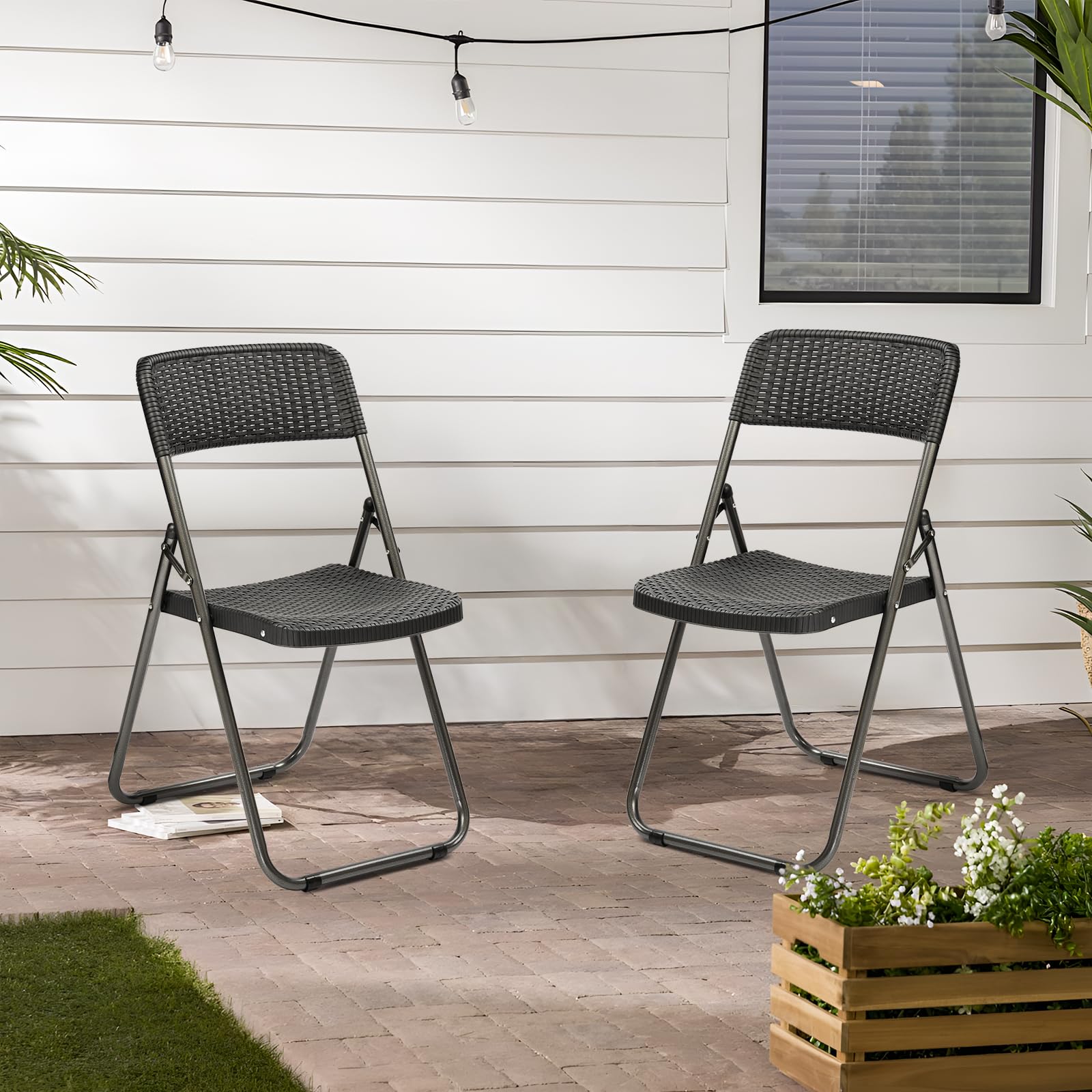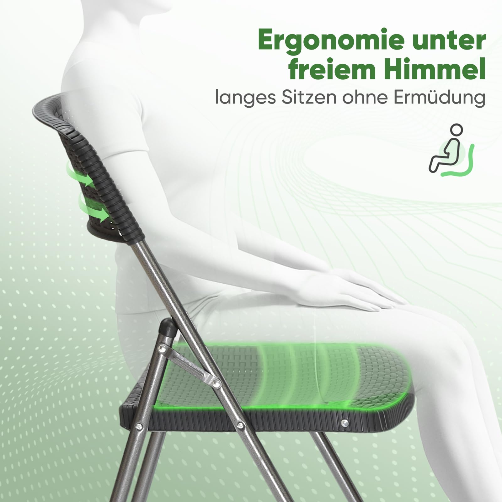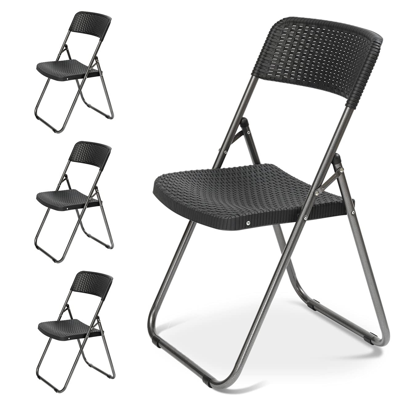Sekey Klappstuhl 4er Set Gartenstuhl Rattan-Optik - Schwarz