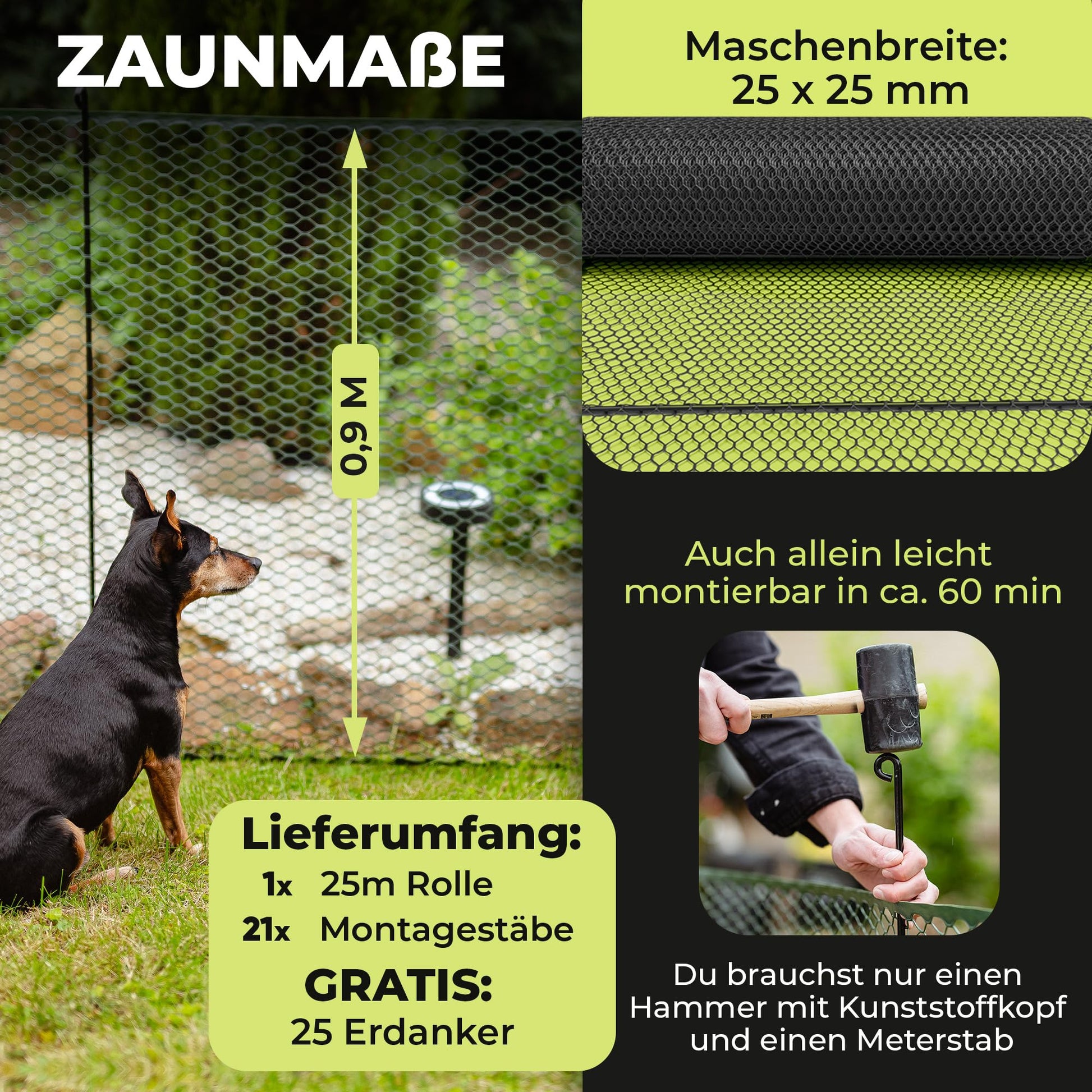 - Gesamtlänge: 25 Meter flexibler Begrenzungszaun