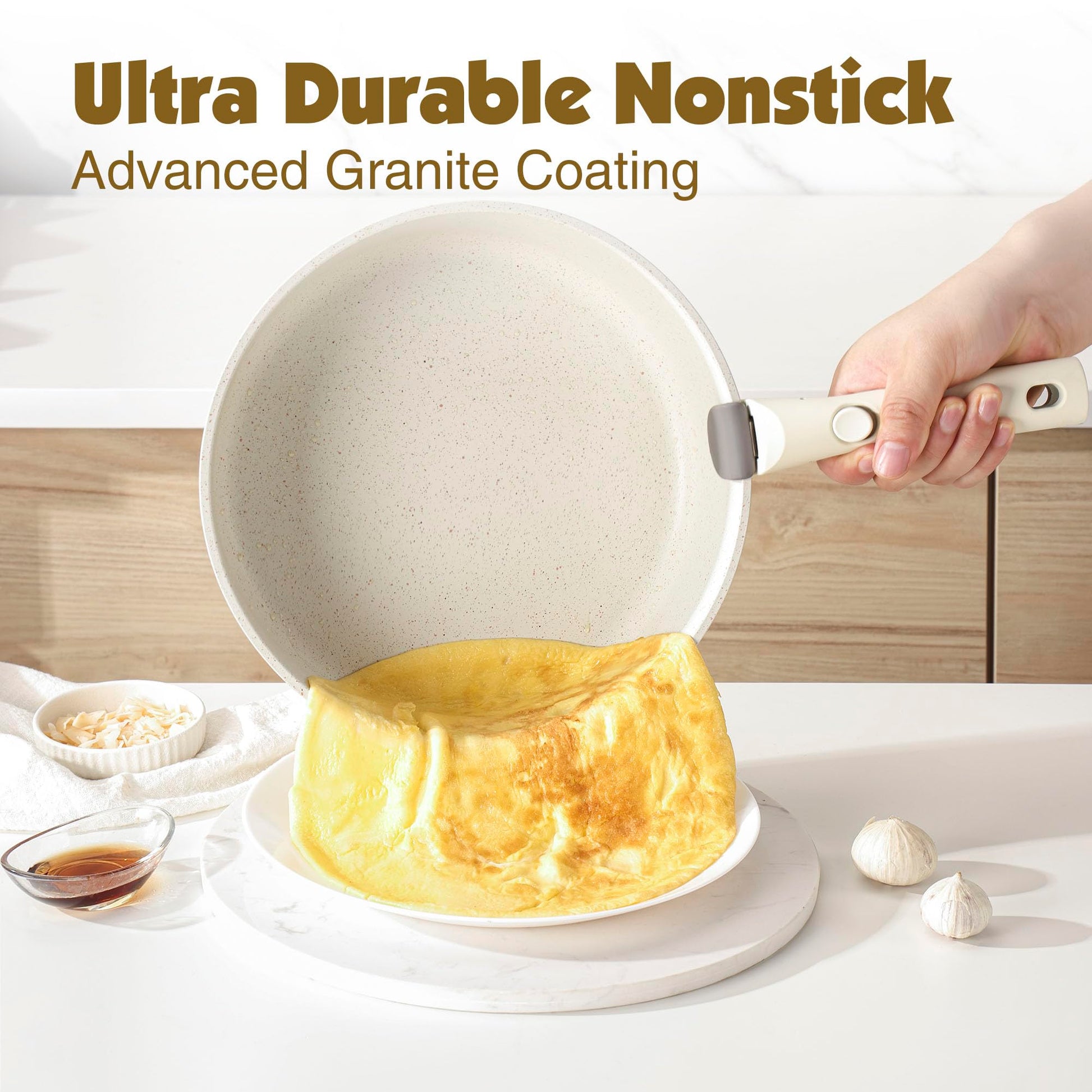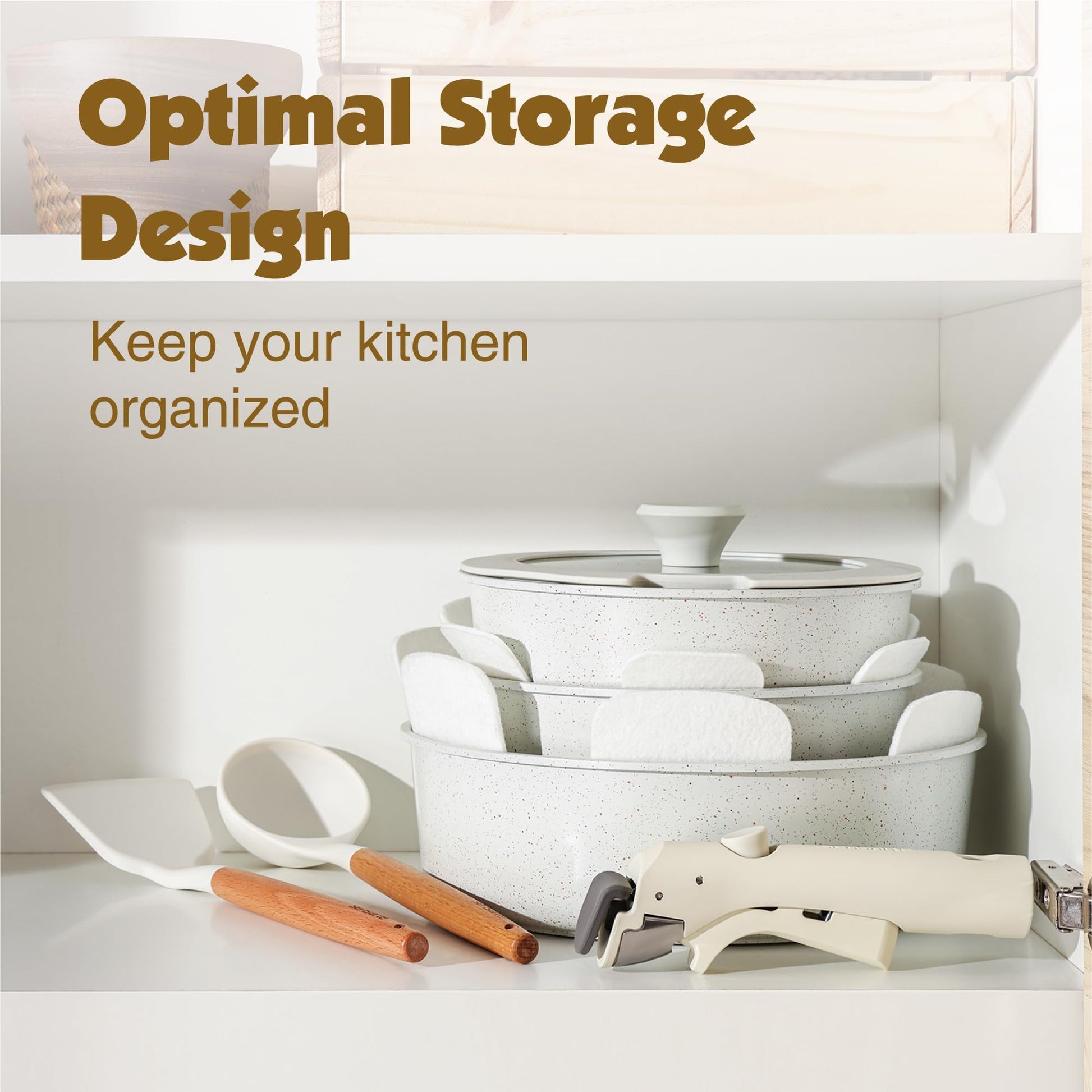 SENSARTE 17-tlg. Kochgeschirr antihaft – weiss, abnehmbarer Griff