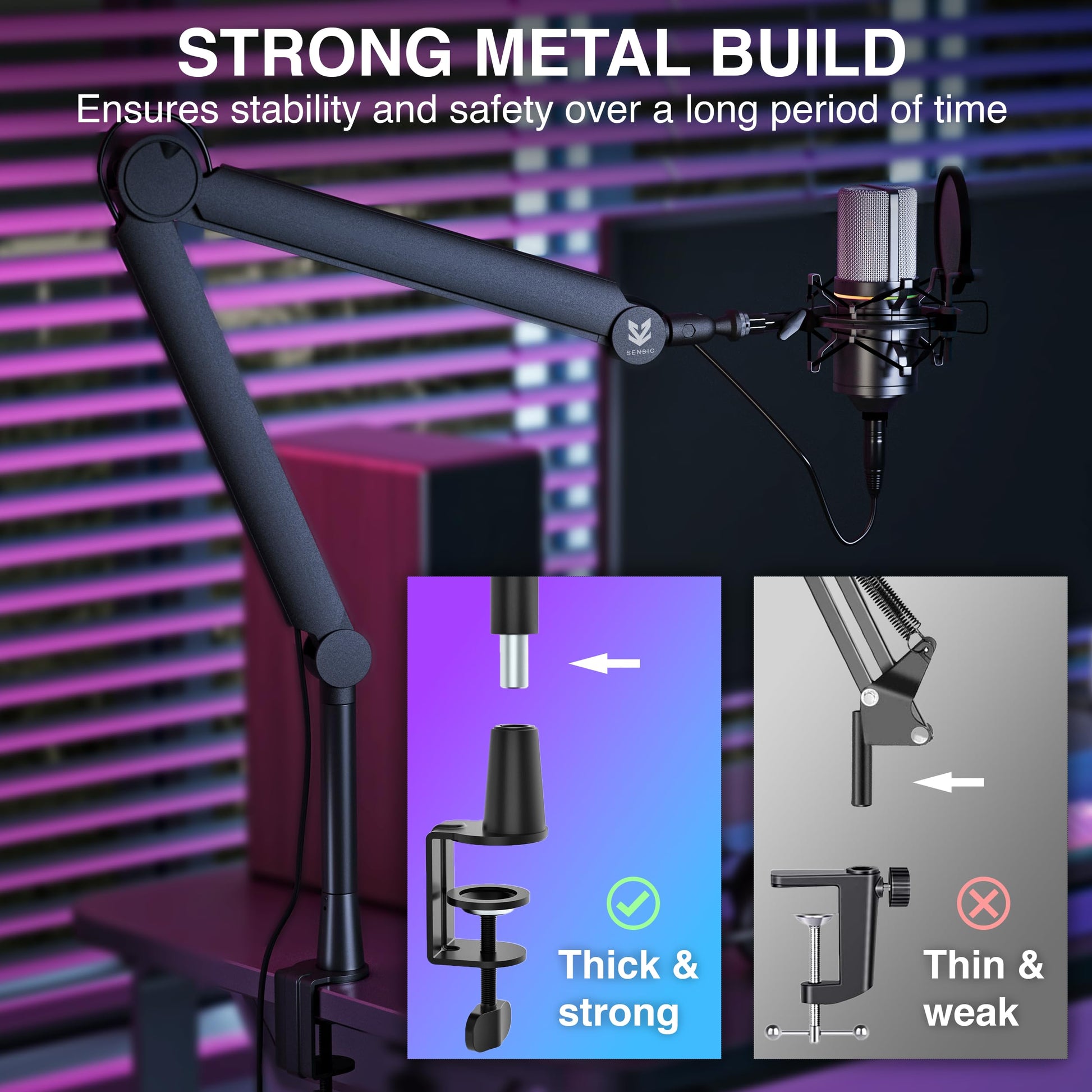 Wir setzen auf hochwertige Materialien, um eine maximale Tragfähigkeit und Langlebigkeit zu gewährleisten. Die stabile Verarbeitung und die starken Tischklemmen garantieren, dass Ihr Mikrofon auch bei intensiver Nutzung sicher an seinem Platz bleibt.