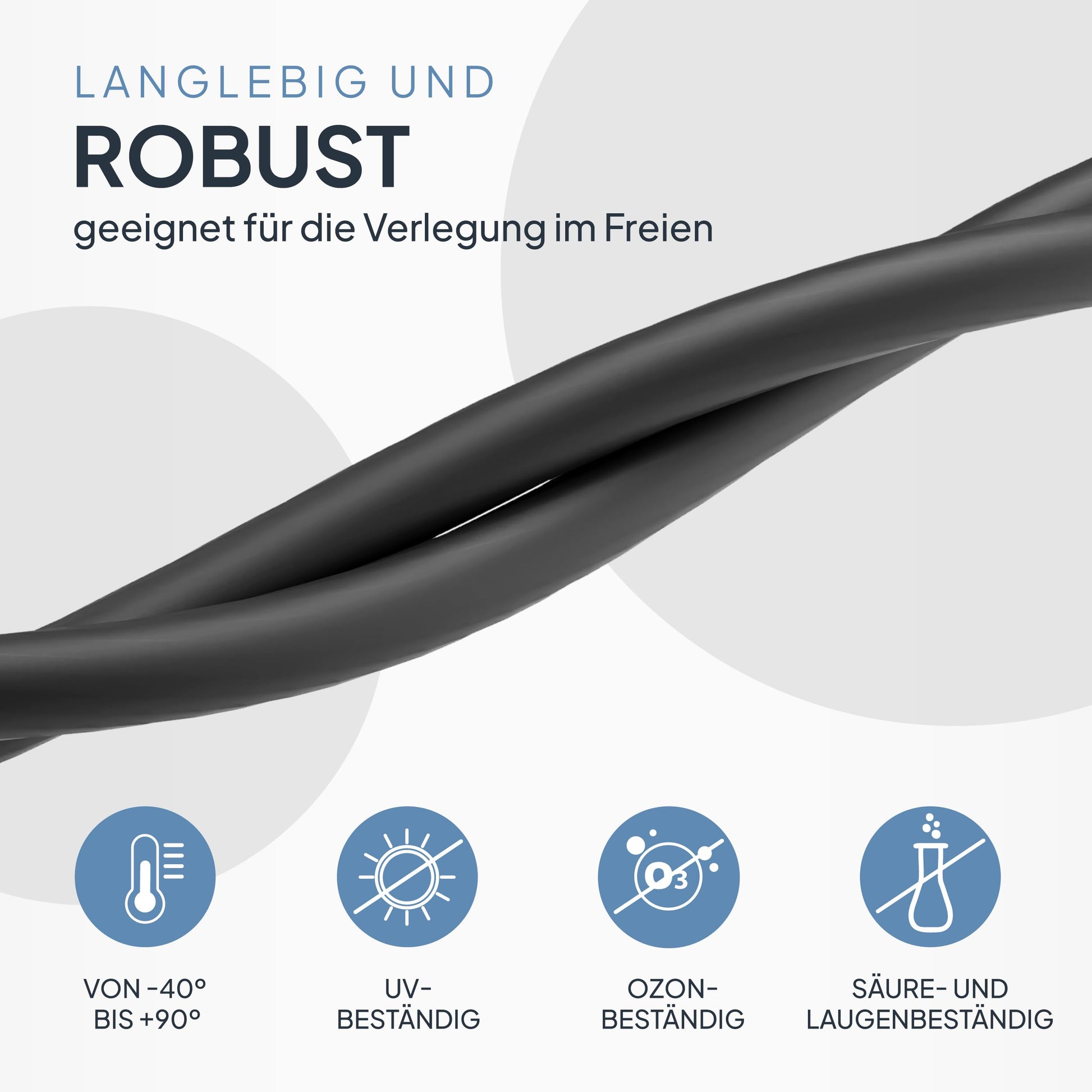 Dank der robusten, doppelt isolierten Bauweise und der Fertigung nach europäischen Normen können Sie sich auf eine maximale Lebensdauer und einen störungsfreien Betrieb Ihrer PV-Anlage verlassen. Die Materialien sind darauf ausgelegt, über Jahre hinweg extremen Temperaturen, Feuchtigkeit und intensiver Sonneneinstrahlung standzuhalten, ohne an Flexibilität oder Schutzwirkung zu verlieren.