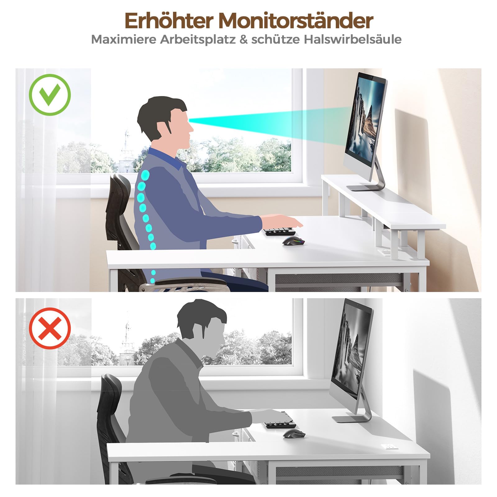 - Ergonomischer Monitoraufsatz: Fördert eine gesunde Körperhaltung und entlastet Nacken sowie Rücken.
