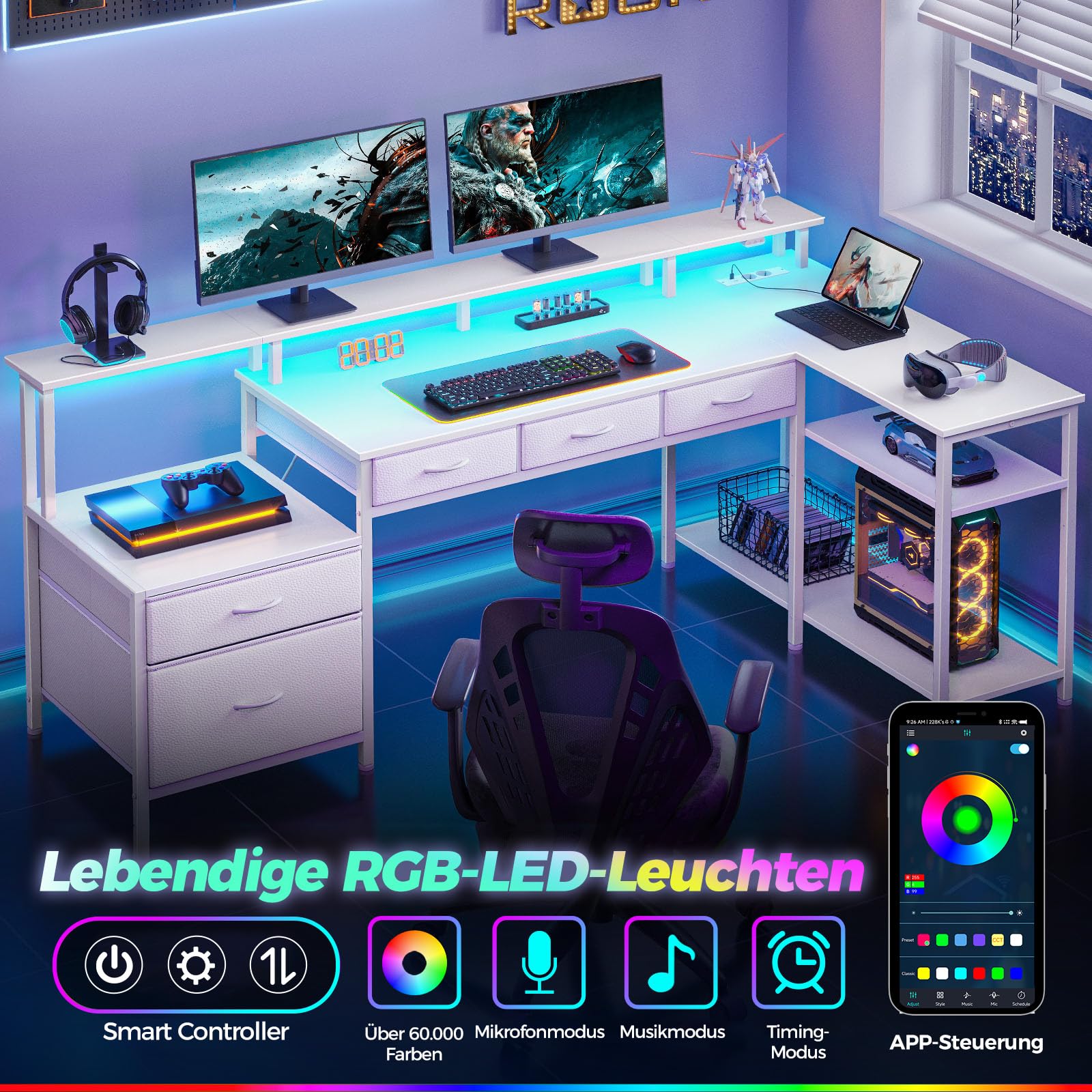 Dieser L-förmige Schreibtisch ist die ideale Lösung für ein modernes Büro, das Jugendzimmer oder Ihre Gaming-Ecke und vereint durchdachtes Design mit hoher Funktionalität.