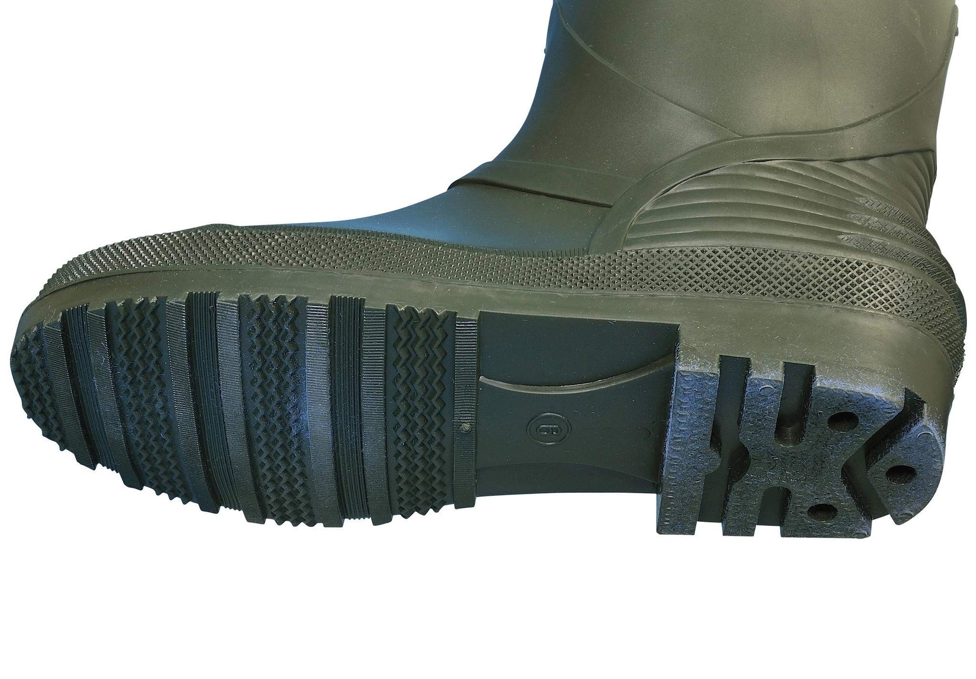 Die Wathose verfügt über fest integrierte Stiefel mit einer widerstandsfähigen und griffigen Profilsohle aus Gummi. Diese sorgt für einen festen und sicheren Stand, selbst auf unebenem oder rutschigem Untergrund wie Schlamm oder Kies.