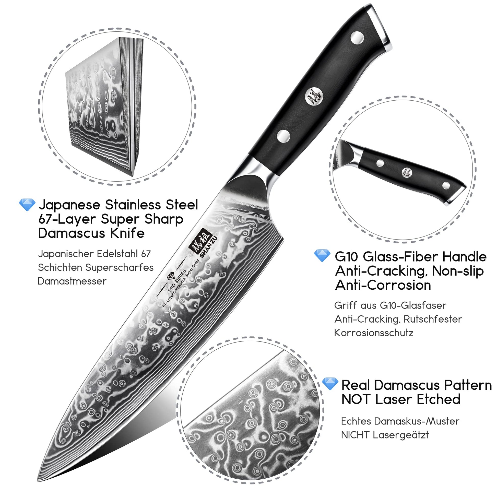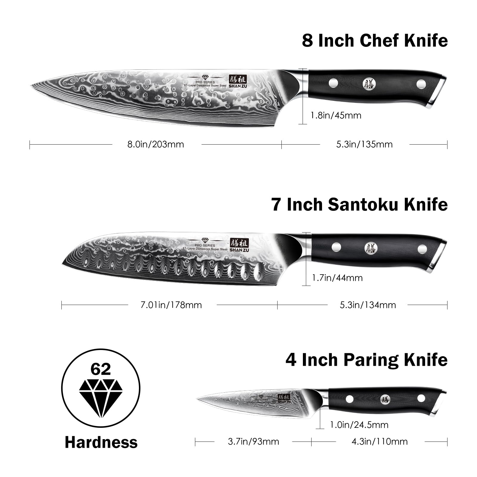 SHAN ZU Damast Küchenmesser Set 3-tlg. Japan Superstahl G10