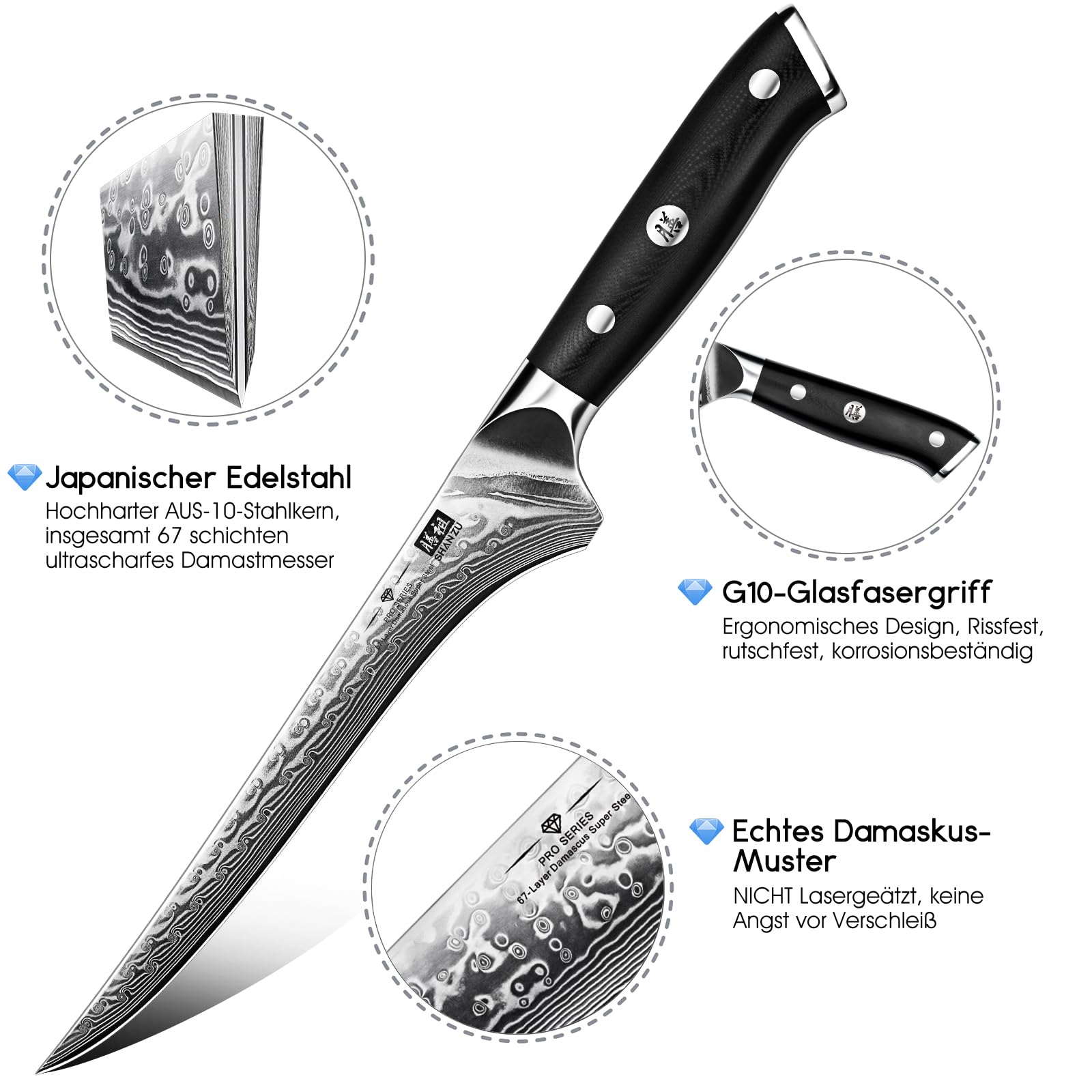 SHAN ZU Damast Filetiermesser PRO Series Fischfiliermesser – 18 cm