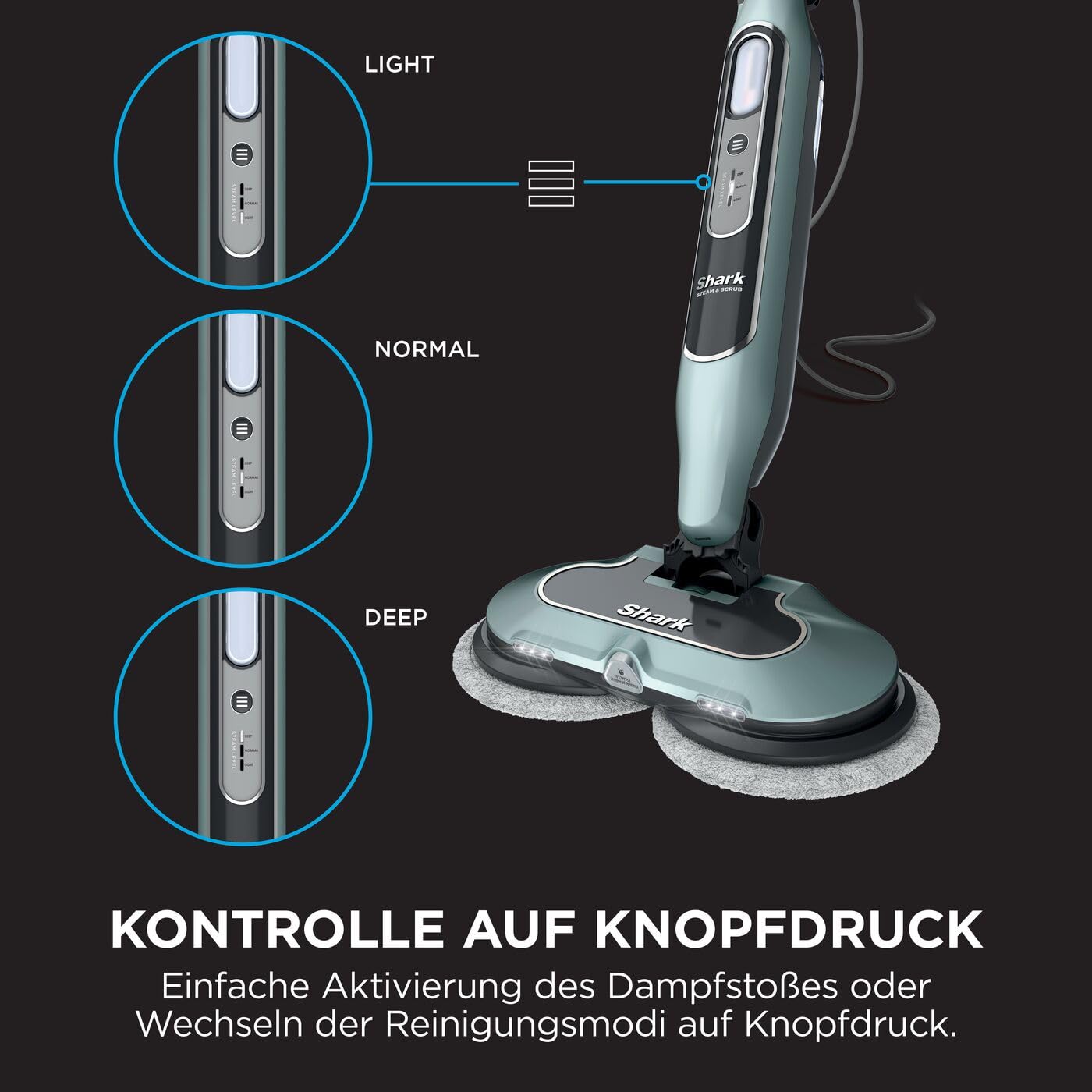 Er kombiniert zwei Technologien: Zwei rotierende Power-Pads schrubben den Boden mit 150 Umdrehungen pro Minute, während die zuschaltbare Steam Blaster-Funktion einen kraftvollen, gezielten Dampfstrahl direkt auf den Fleck abgibt. Diese Kombination löst selbst festsitzenden Schmutz effektiv.