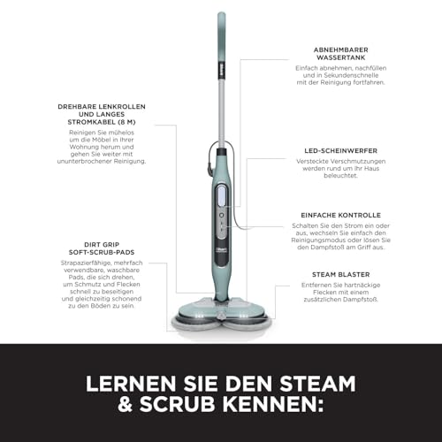 - Kombinierte Reinigungskraft: Das Gerät dampft und schrubbt in einem einzigen Arbeitsgang und entfernt so wirksam festsitzenden Schmutz, Staub, Fett und Bakterien.