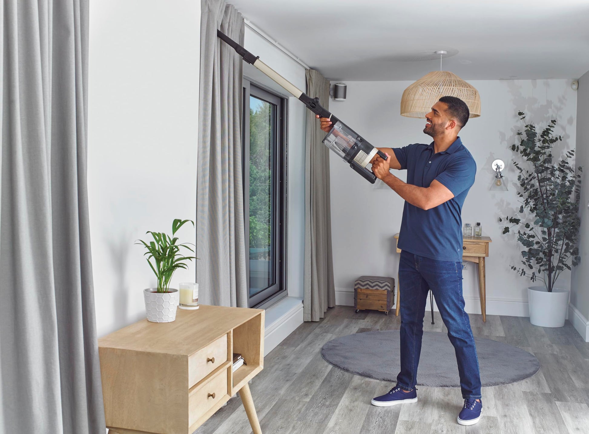 Das flexible Flexology-Saugrohr lässt sich auf Knopfdruck abknicken, sodass Sie mühelos unter tiefen Möbeln wie Betten oder Sofas reinigen können, ohne sich bücken zu müssen. Nach der Benutzung kann der Staubsauger kompakt zusammengeklappt und platzsparend freistehend gelagert werden.