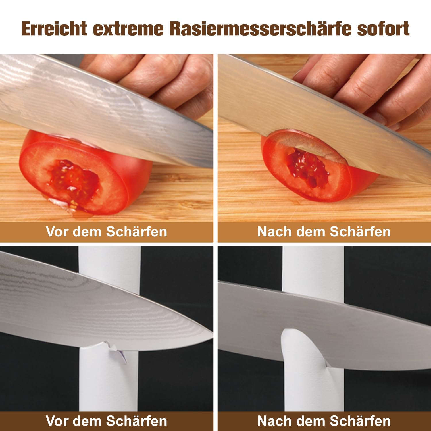 - Universeller Winkel: Der standardisierte 20-Grad-Schärfwinkel ist für die meisten gängigen Küchenmesser ideal.