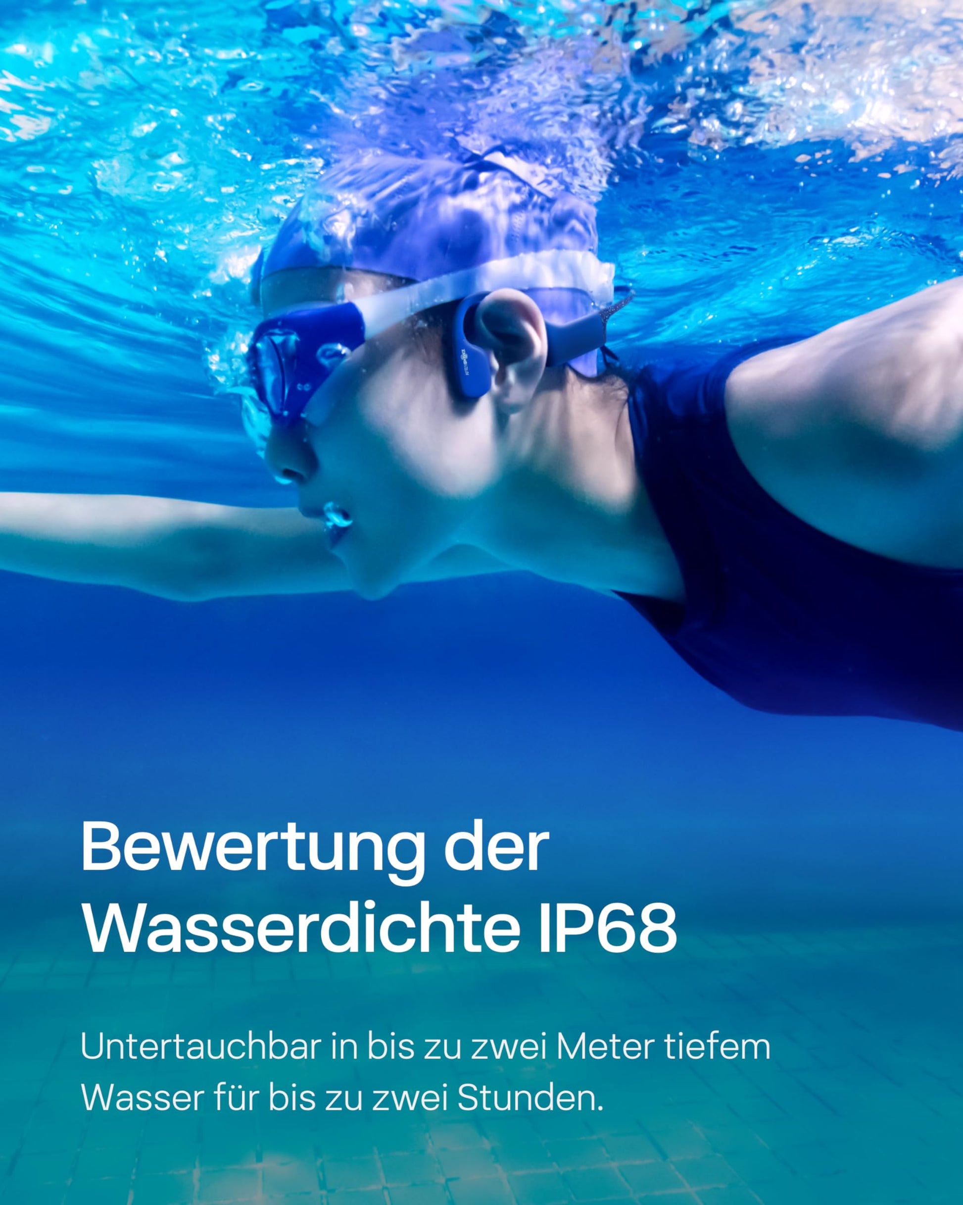 - IP68 Wasserdichtigkeit: Vollständig wasserdicht und tauchfähig, ermöglicht der Kopfhörer das Schwimmen in einer Wassertiefe von bis zu zwei Metern.