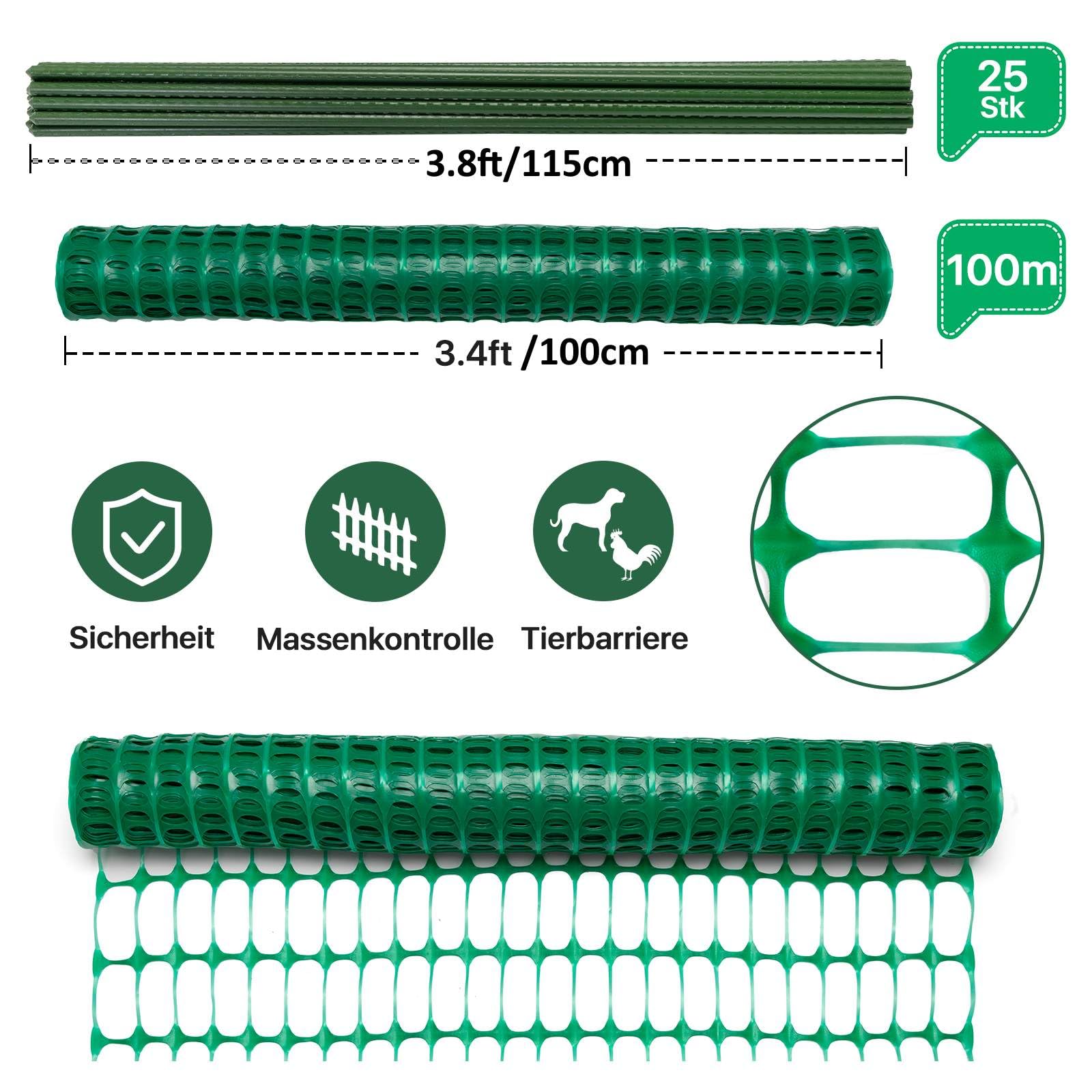 - Umfassendes Komplettset: Beinhaltet ein 30 Meter langes und 100 cm hohes Zaunnetz, 25 robuste, kunststoffummantelte Stahlpfähle (115 cm hoch) sowie 100 Kabelbinder für eine sofortige Montage.