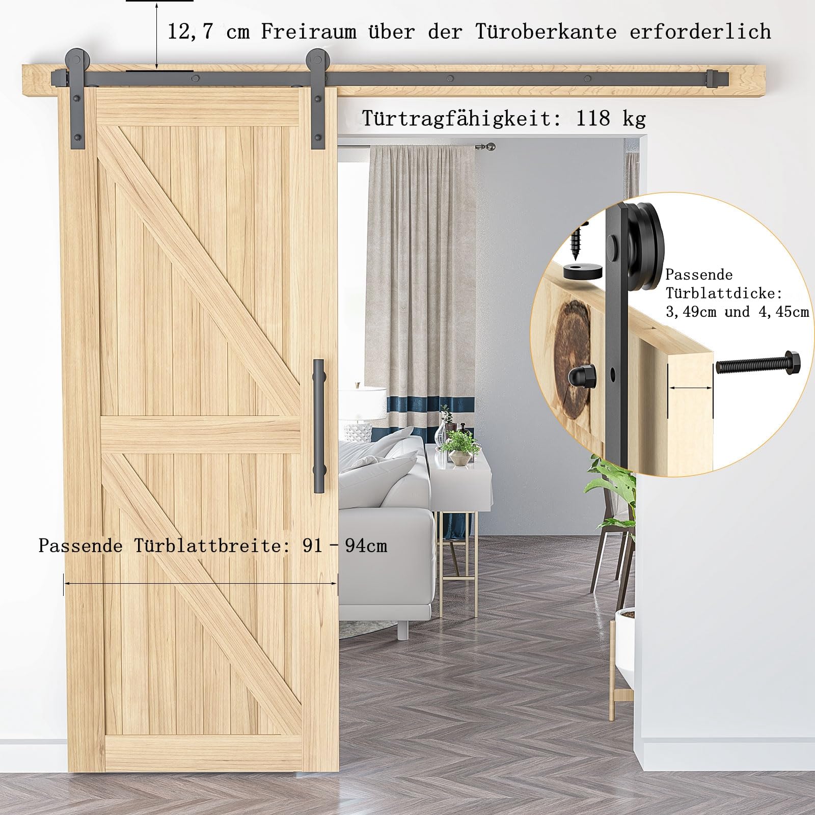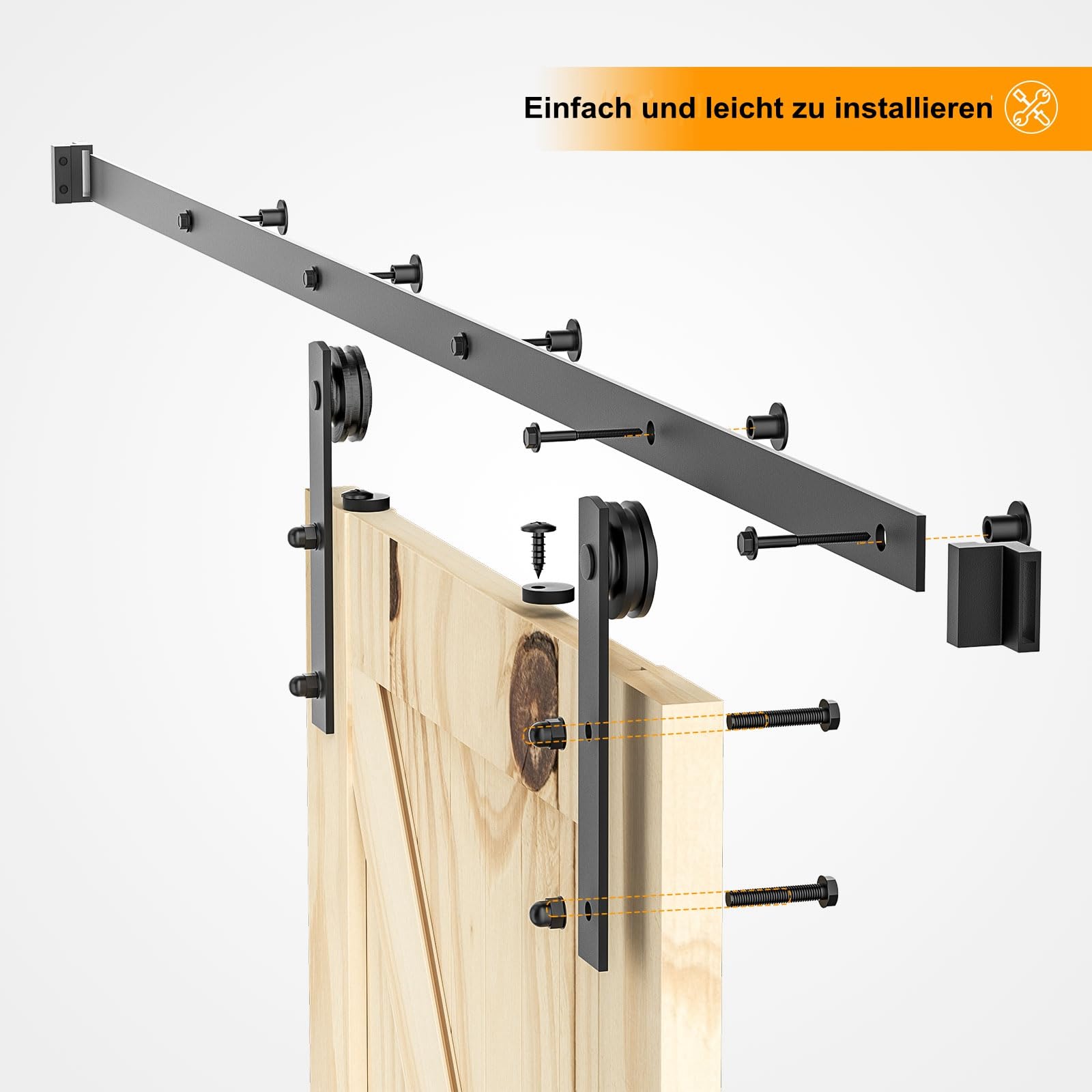 - Komplettes Montageset: Enthält alle notwendigen Teile für die Aufhängung der Tür, inklusive einer detaillierten Schritt-für-Schritt-Anleitung. Das Türblatt selbst ist nicht im Lieferumfang enthalten.