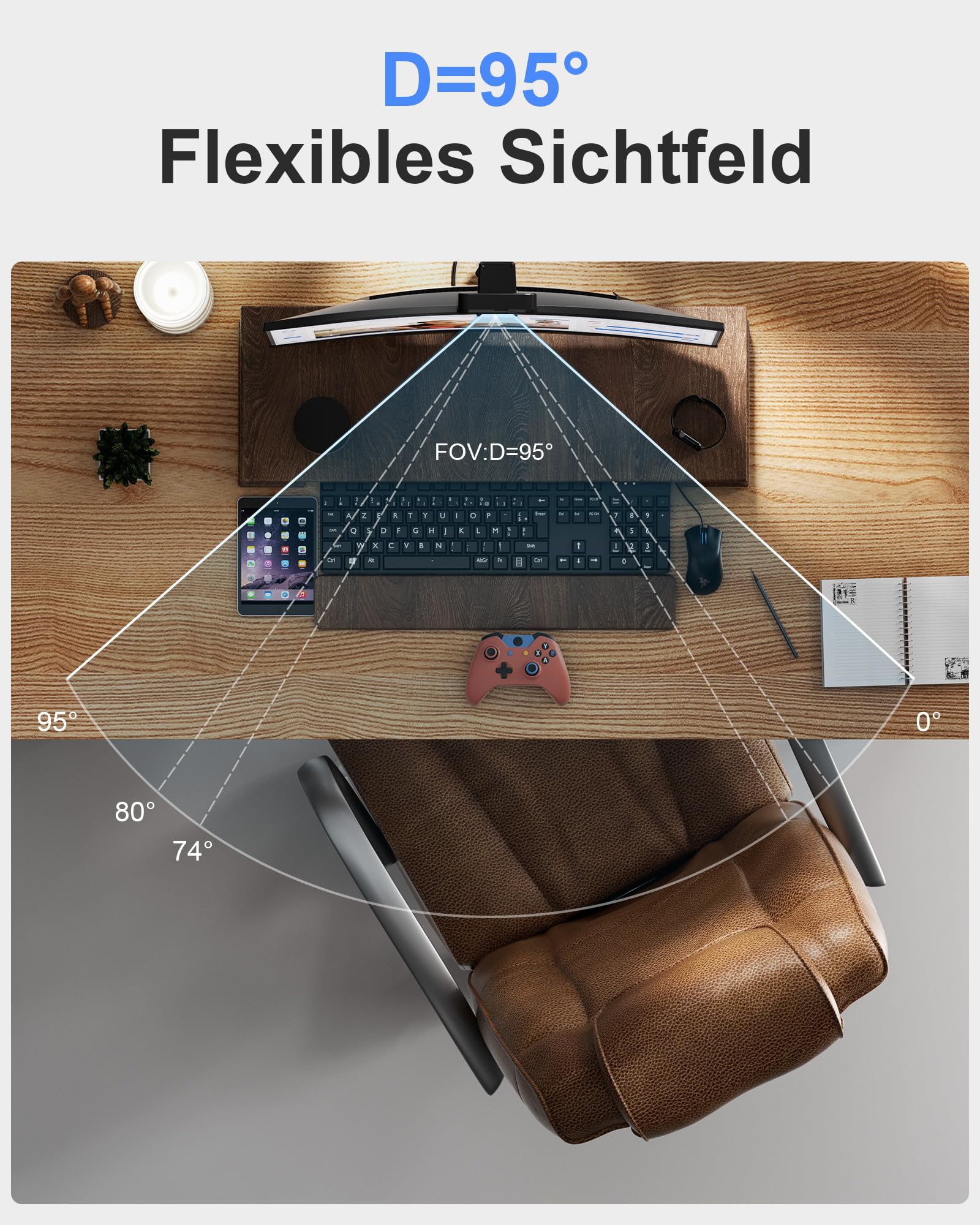 Mit dem 95°-Weitwinkelobjektiv erfassen Sie mühelos einen breiten Bildausschnitt, perfekt für Präsentationen oder Gruppenanrufe.