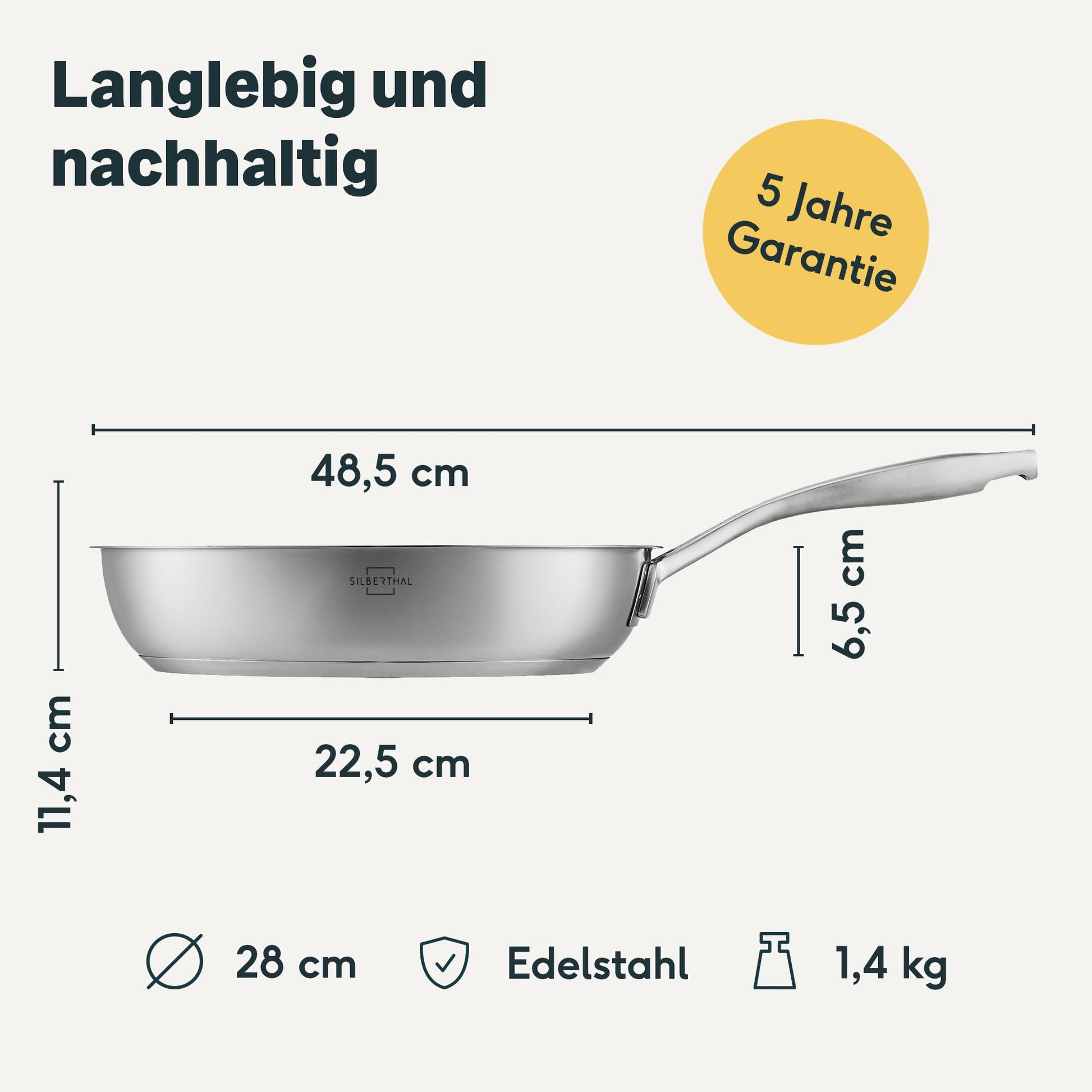 SILBERTHAL Edelstahl Bratpfanne 28cm – Unbeschichtet Induktion