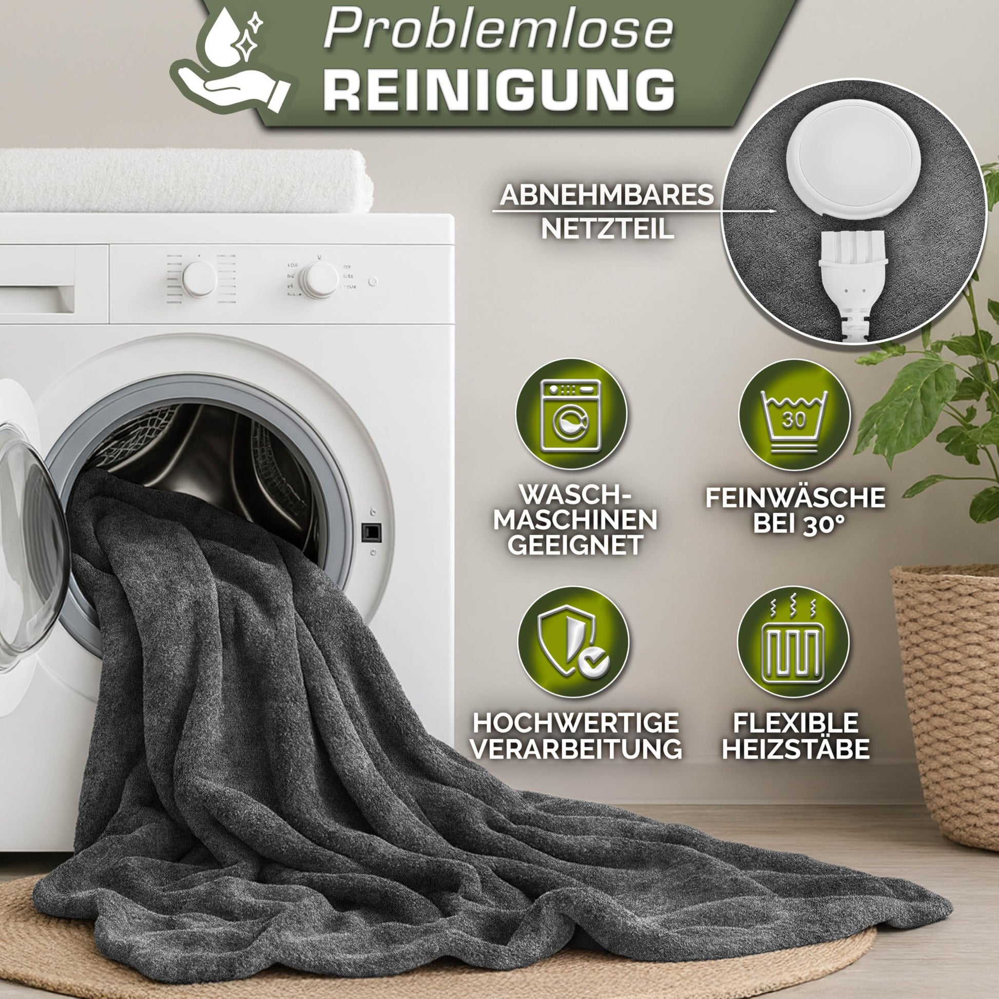 - Lieferumfang: 1 x Heizdecke mit abnehmbarem Controller, 1 x Bedienungsanleitung