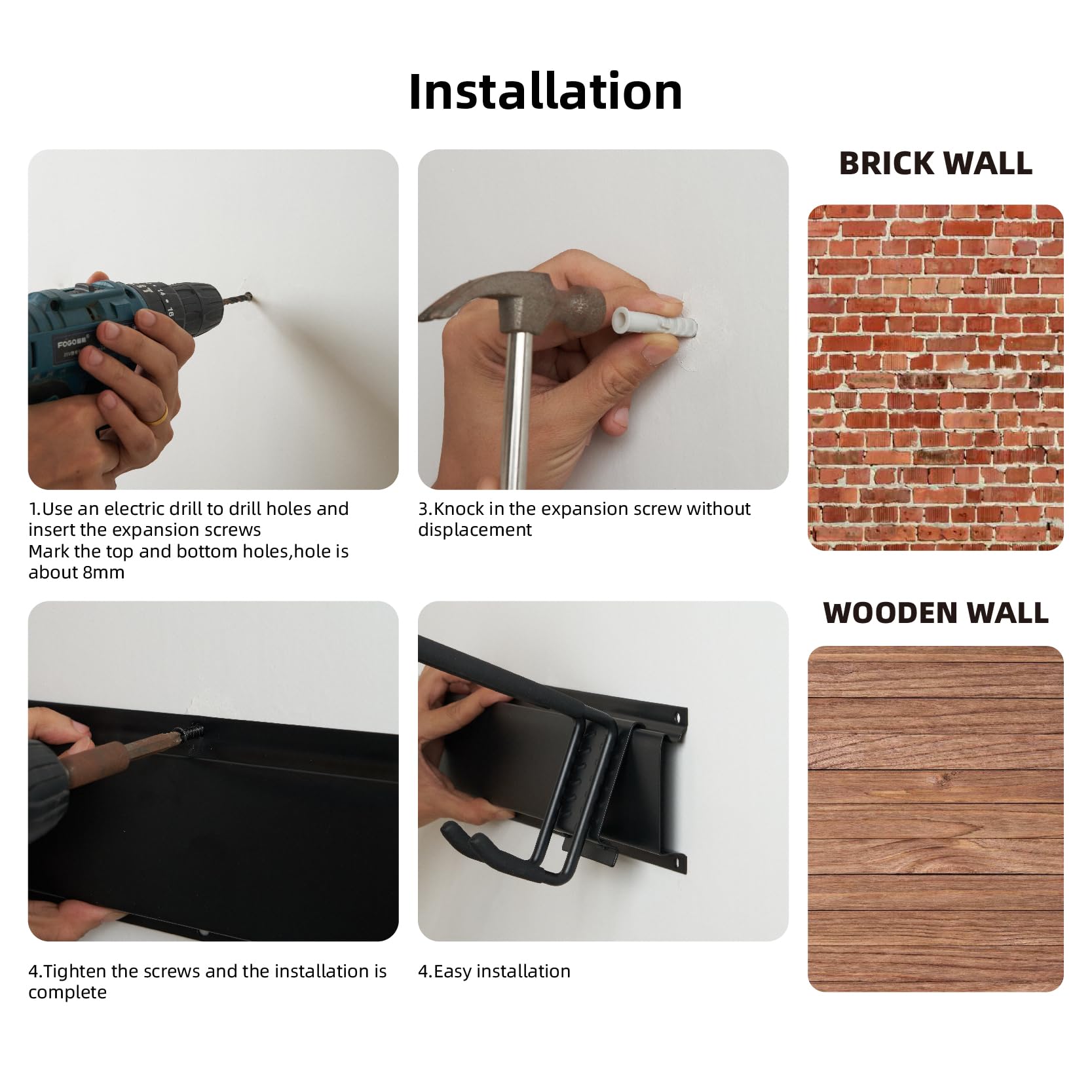 Das gesamte System ist aus hochfestem Stahl gefertigt und kann bei korrekter Montage an einer stabilen Wand mit einem Gewicht von bis zu 227 kg (500 Pfund) belastet werden. Es eignet sich somit auch hervorragend für schwere Elektrowerkzeuge und Ausrüstung.