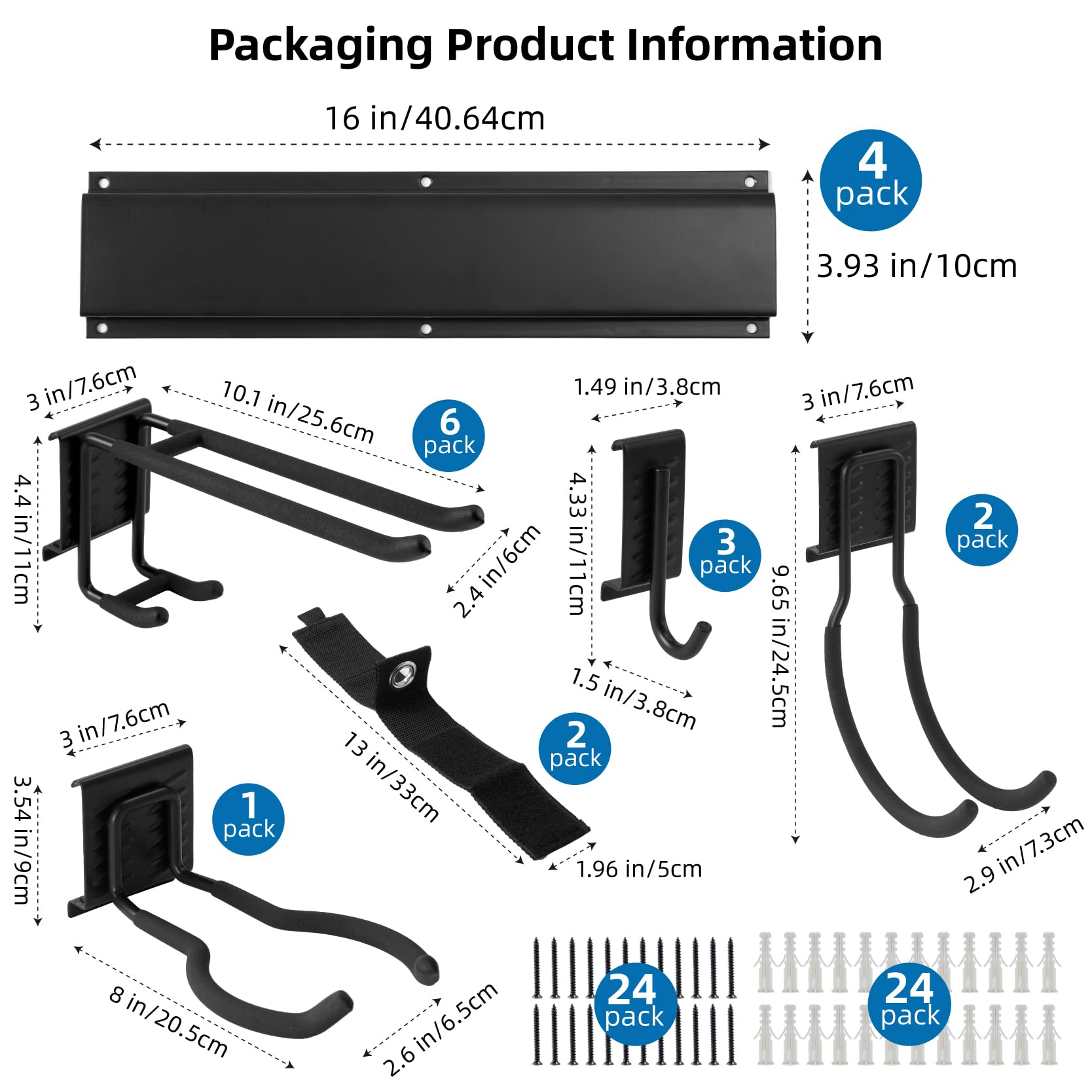 - Vielseitige Haken: Beinhaltet 12 Haken für jeden Zweck – 6 doppelte Langhaken (25,4 cm), 3 kleine J-Haken, 1 Spezialhaken für Elektrowerkzeuge und 2 halbrunde Haken für Schläuche oder Kabel.
