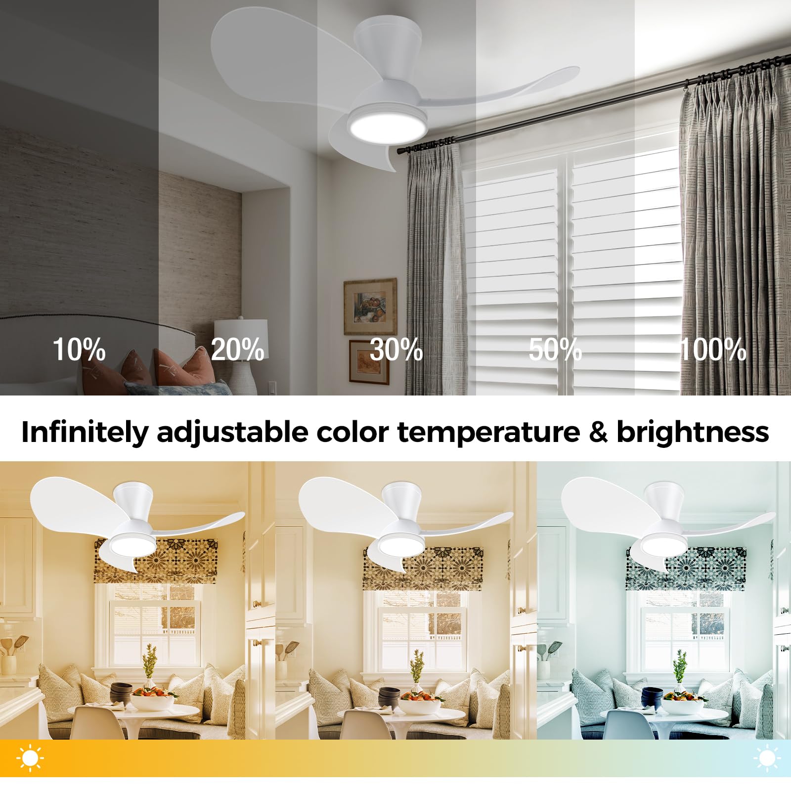 slochi Leiser Deckenventilator mit Beleuchtung - 77cm