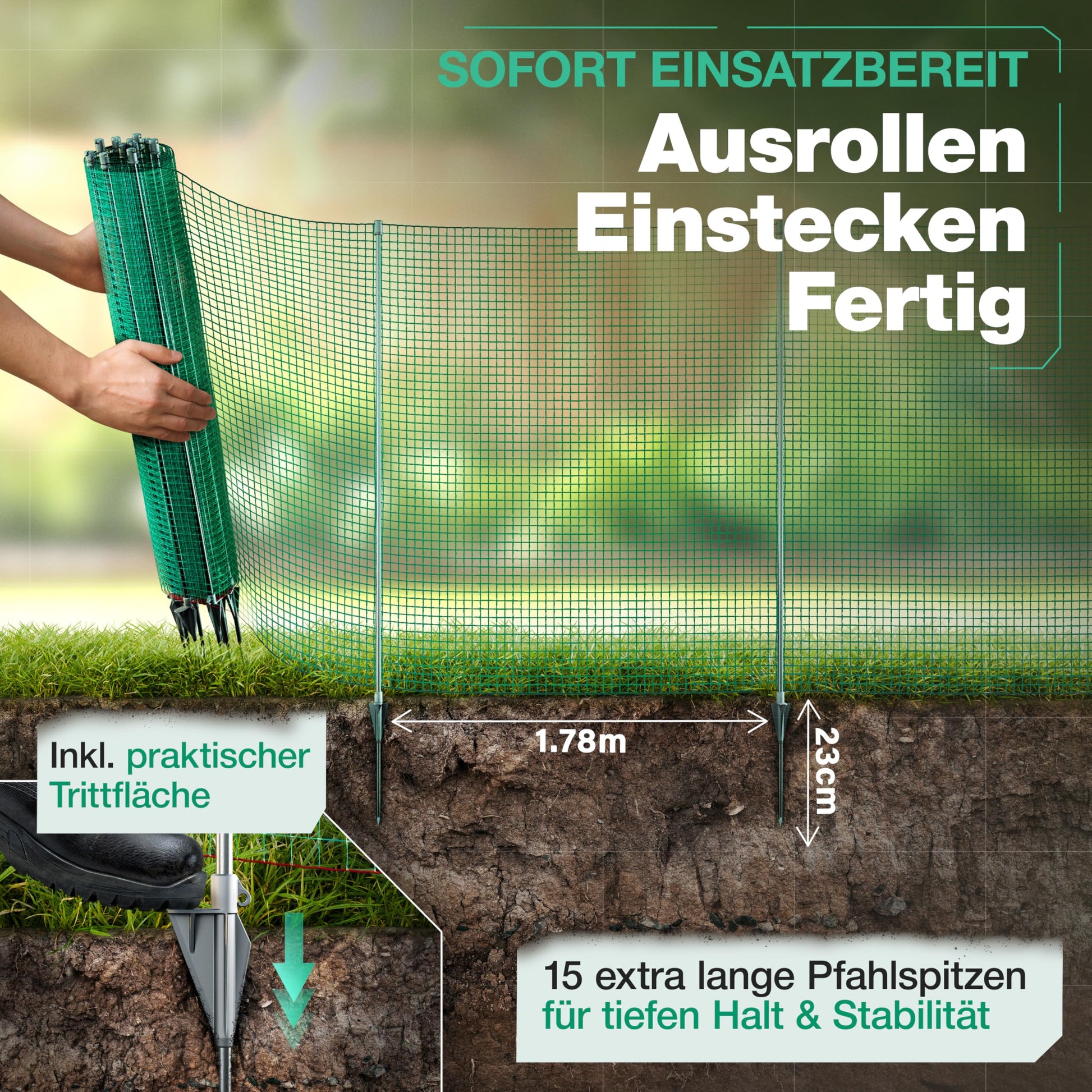 - Anpassbares Design: Mit einer Gesamtlänge von 25 Metern können Sie mühelos unterschiedliche Bereiche abgrenzen und den Zaun flexibel an Ihre Bedürfnisse anpassen.