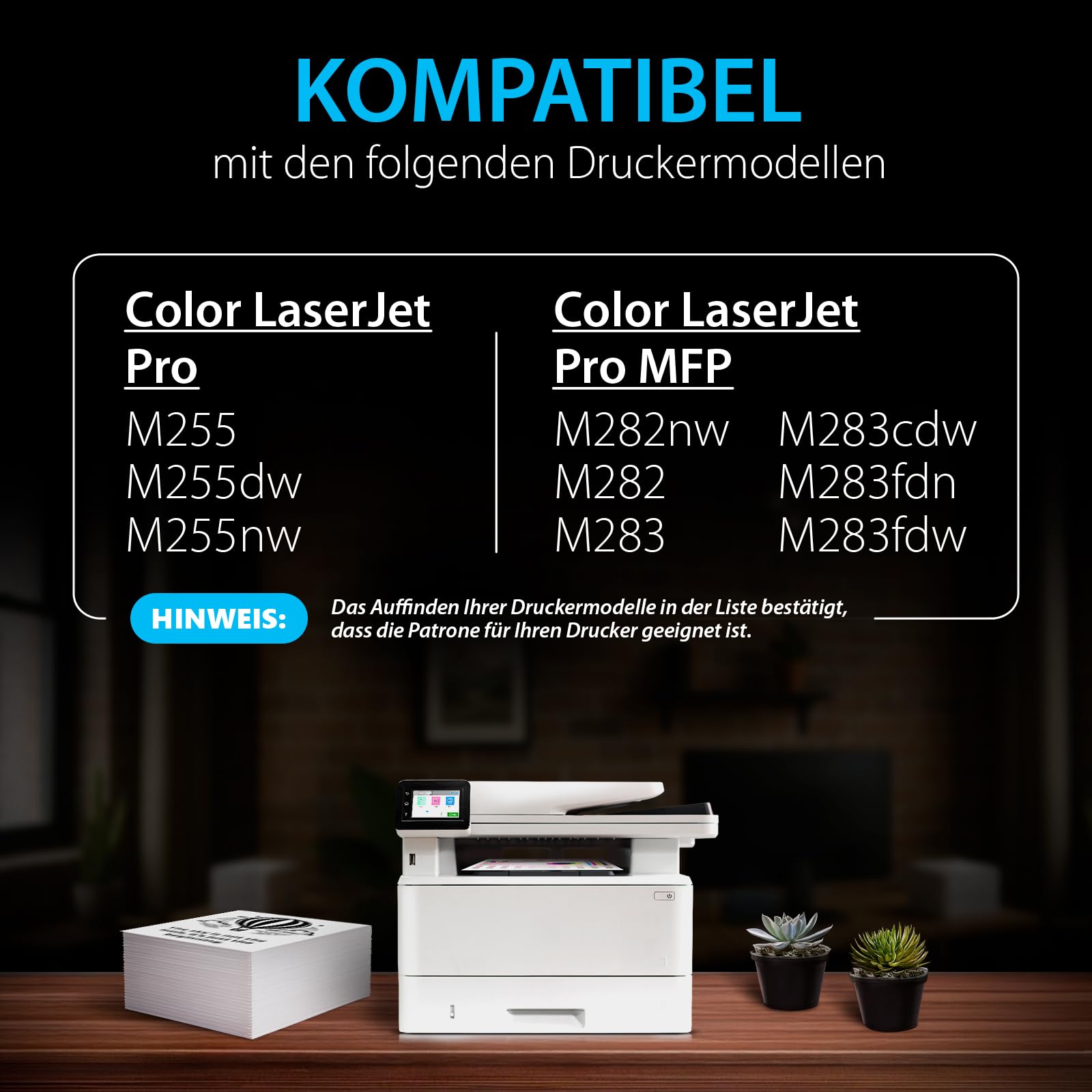 - Breite Kompatibilität: Passend für HP Color Laserjet Pro Modelle M255dw, M255nw sowie die MFP-Serien M282nw, M283cdw, M283fdn und M283fdw.