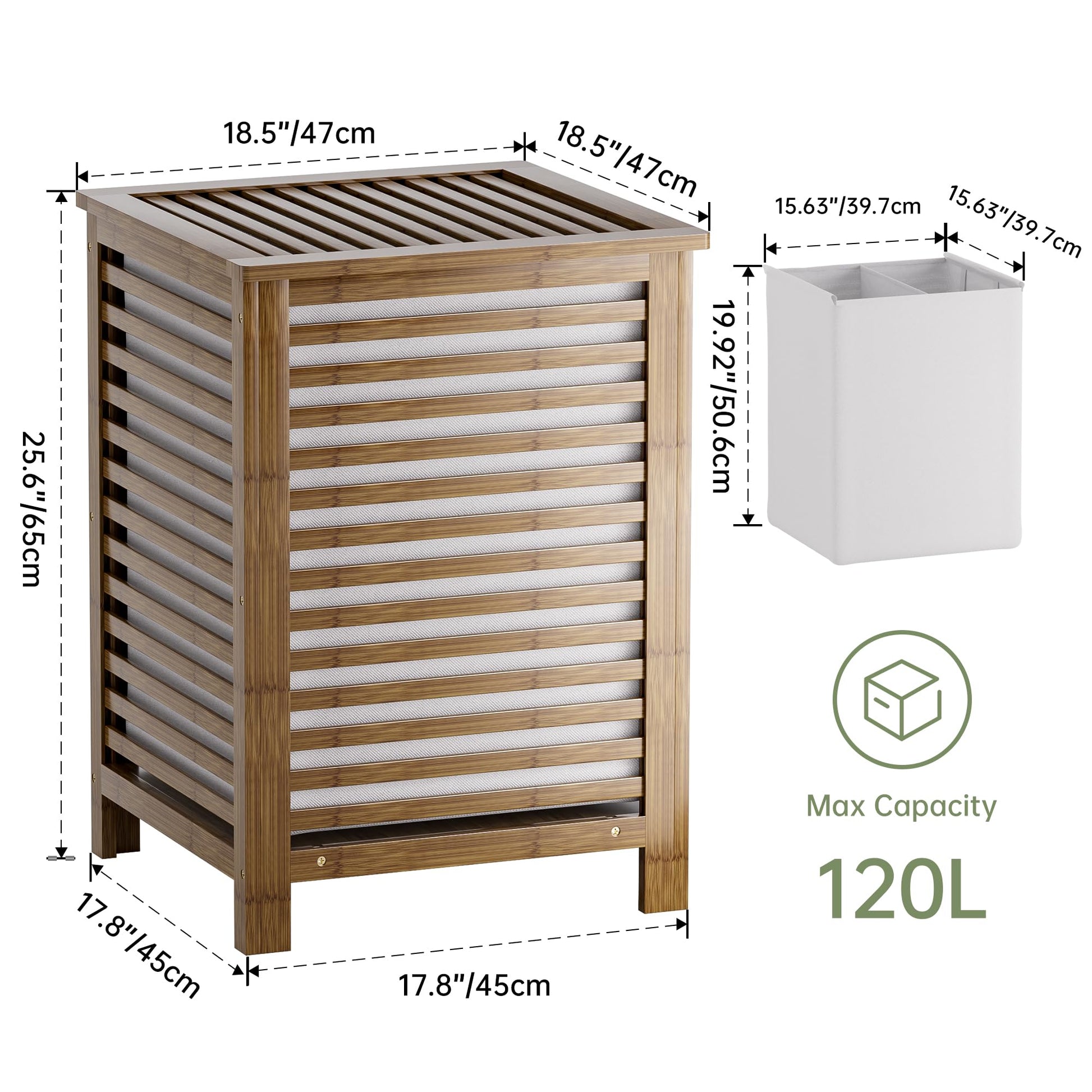 Der Wäschekorb bietet ein grosszügiges Fassungsvermögen von 120 Litern, ideal für Familien. Seine platzsparenden Masse sind 47 x 47 x 65 cm (Länge x Breite x Höhe), sodass er auch in kleineren Räumen gut Platz findet.
