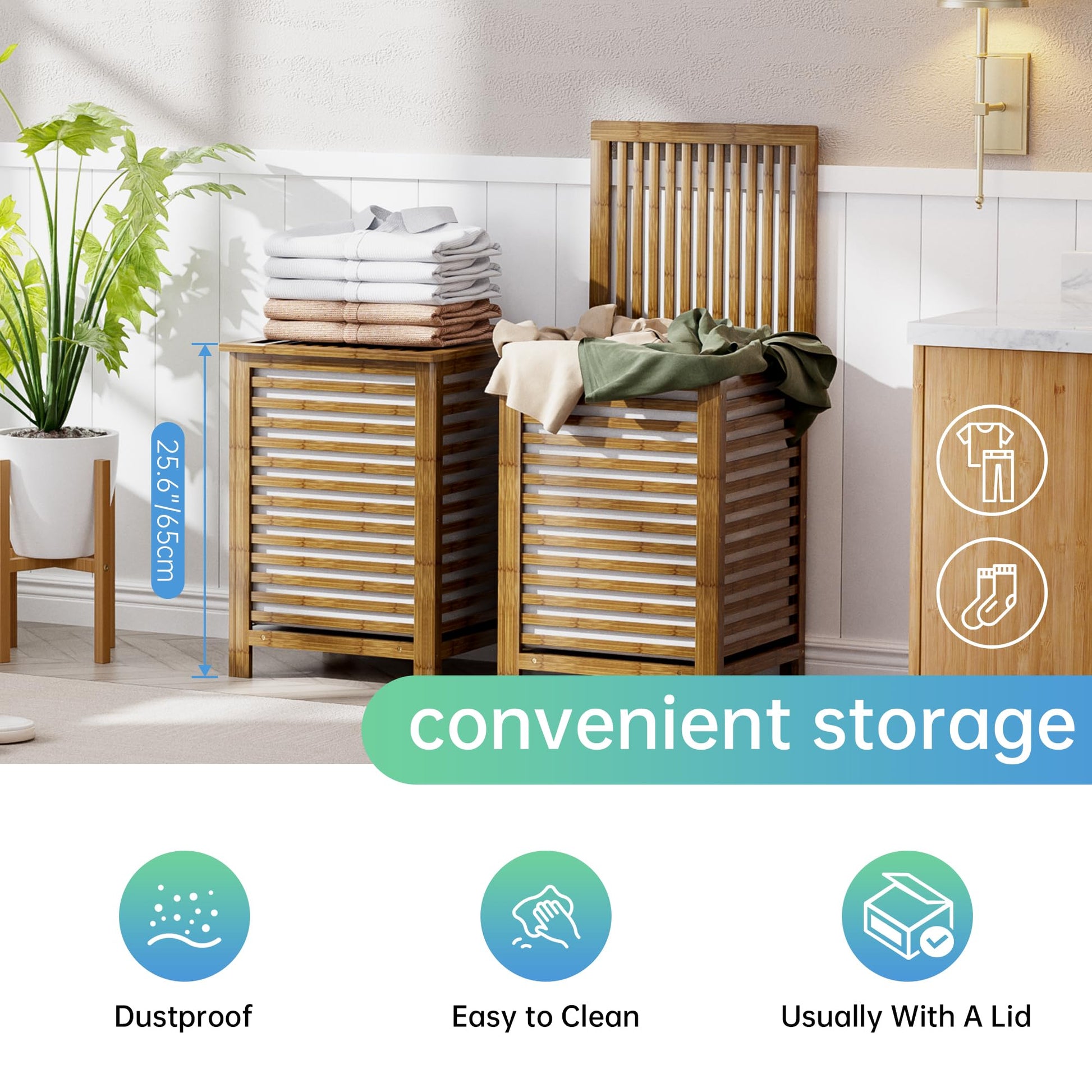 Dieser elegante Wäschekorb aus massivem Bambus ist die ideale Lösung, um Ordnung im Haushalt zu schaffen und gleichzeitig einen stilvollen Akzent zu setzen. Er kombiniert ein grosses Fassungsvermögen mit einem durchdachten, platzsparenden Design für Ihr Schlafzimmer, Badezimmer oder Ihren Waschraum.