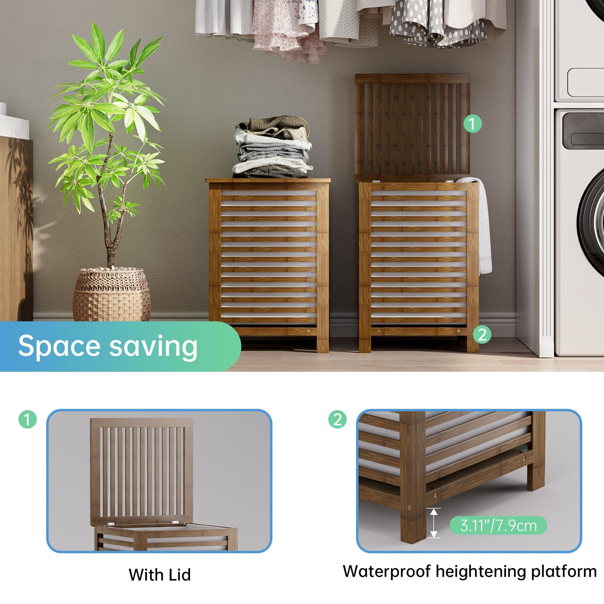 SMIBUY Grosser Wäschekorb Bambus mit Deckel - Nussbaum