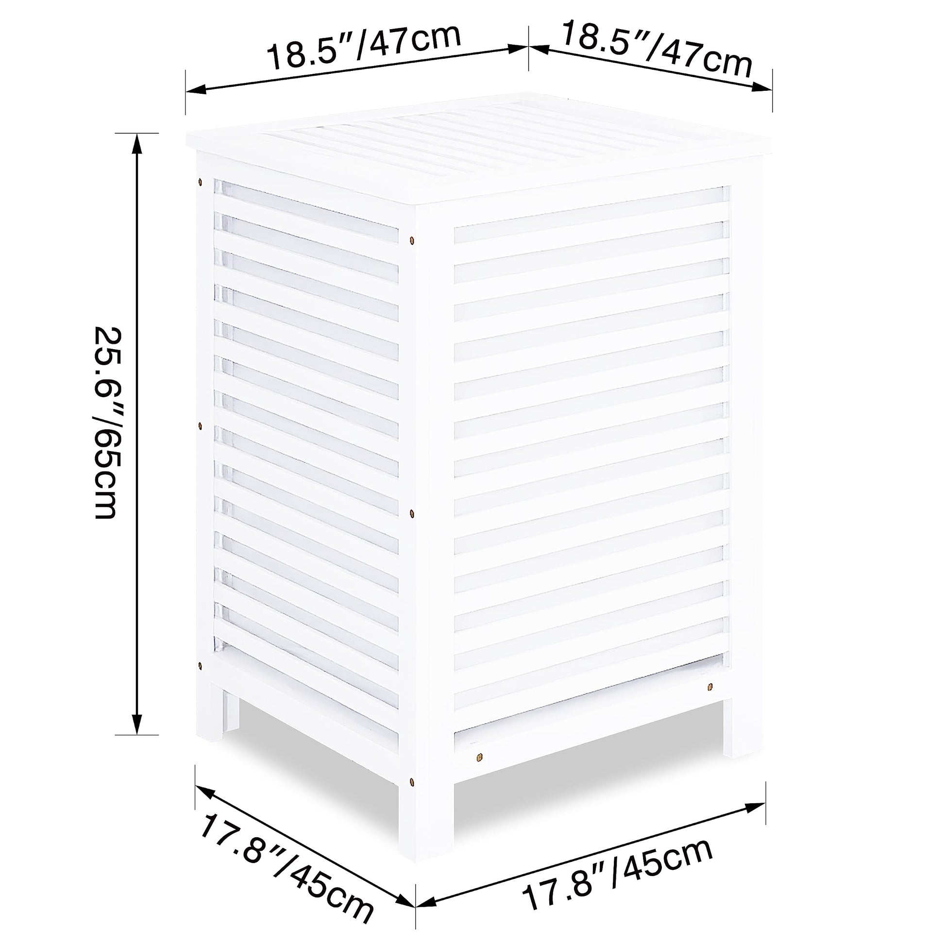 Mit den Massen 47 x 47 x 65 cm und einem grosszügigen Volumen von 120 Litern bietet er reichlich Platz. Durch sein schlankes, vertikales Design nimmt er selbst wenig Raum ein und passt perfekt in Ecken von Schlafzimmern, Bädern oder Waschküchen.