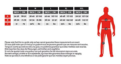 - Grösse M: Konzipiert für einen Brustumfang von 97-102 cm, einen Taillenumfang von 81-86 cm und eine Innenbeinlänge von 83 cm.