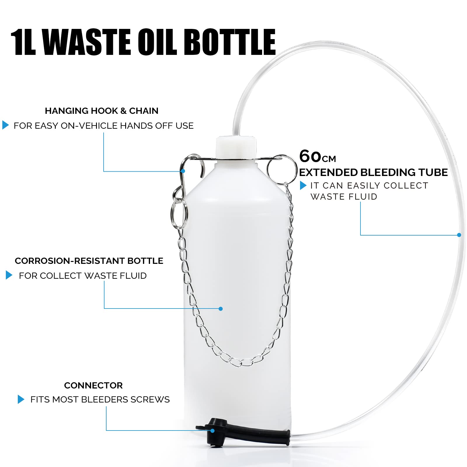 - Professionelles Set: Der 3-Liter-Vorratsbehälter ermöglicht die komplette Wartung des Bremssystems in einem Durchgang. Die mitgelieferte 1-Liter-Flasche fängt alte Flüssigkeit und Luftblasen sicher auf.