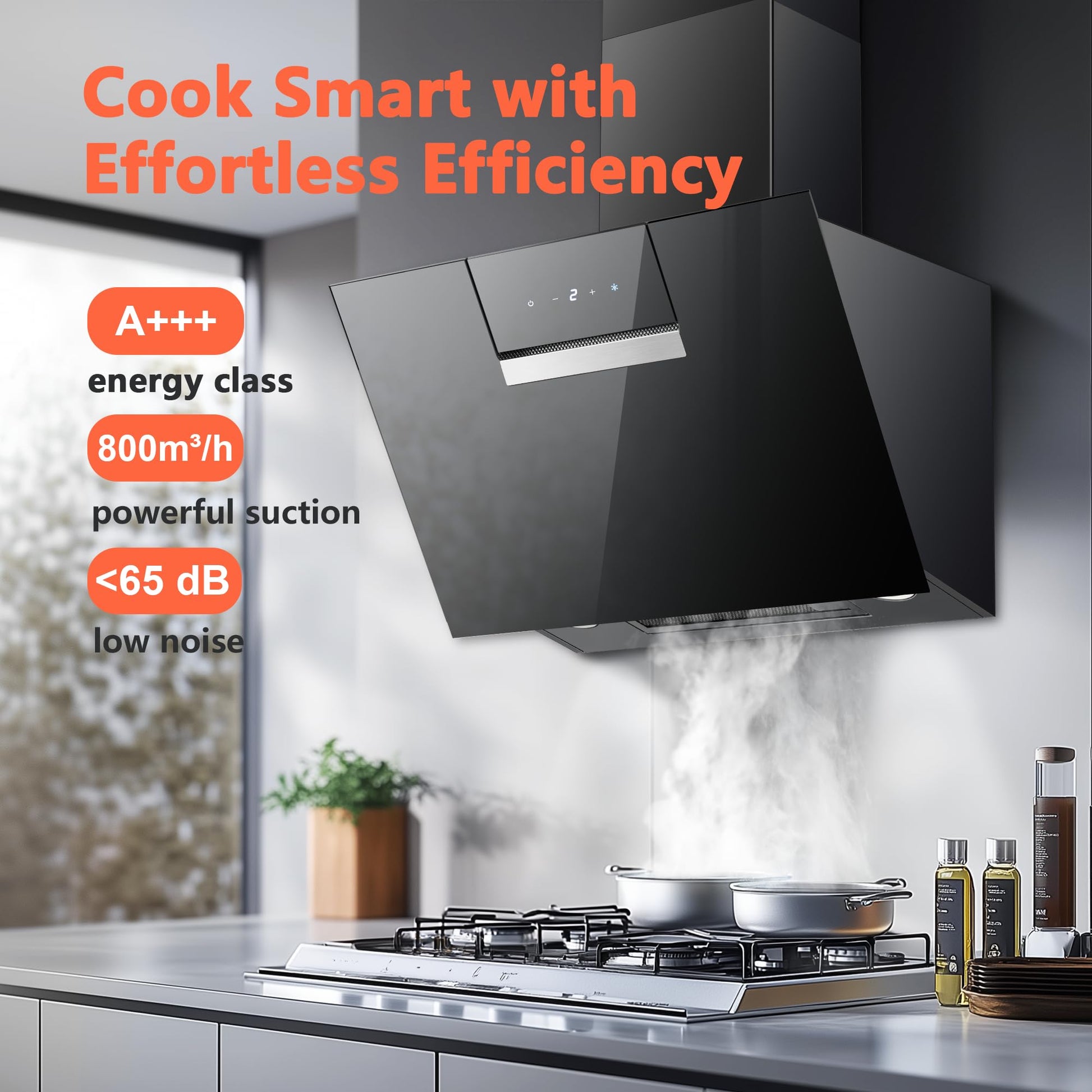 - Starke Saugleistung: Mit bis zu 800 m³/h Luftförderleistung und zwei optimierten Ansaugöffnungen werden Kochdünste schnell und effektiv beseitigt.