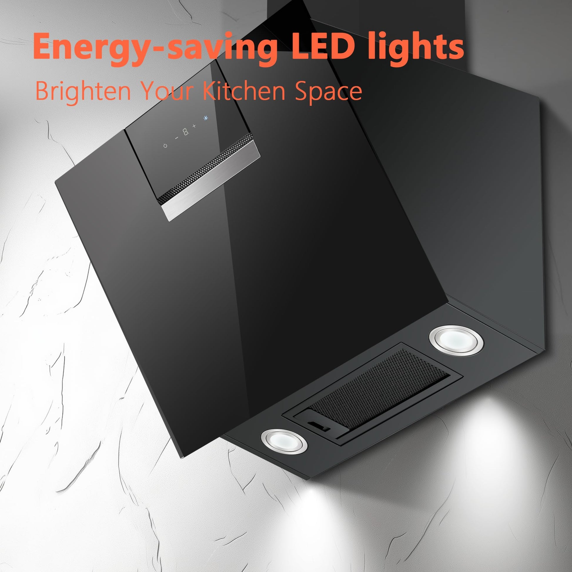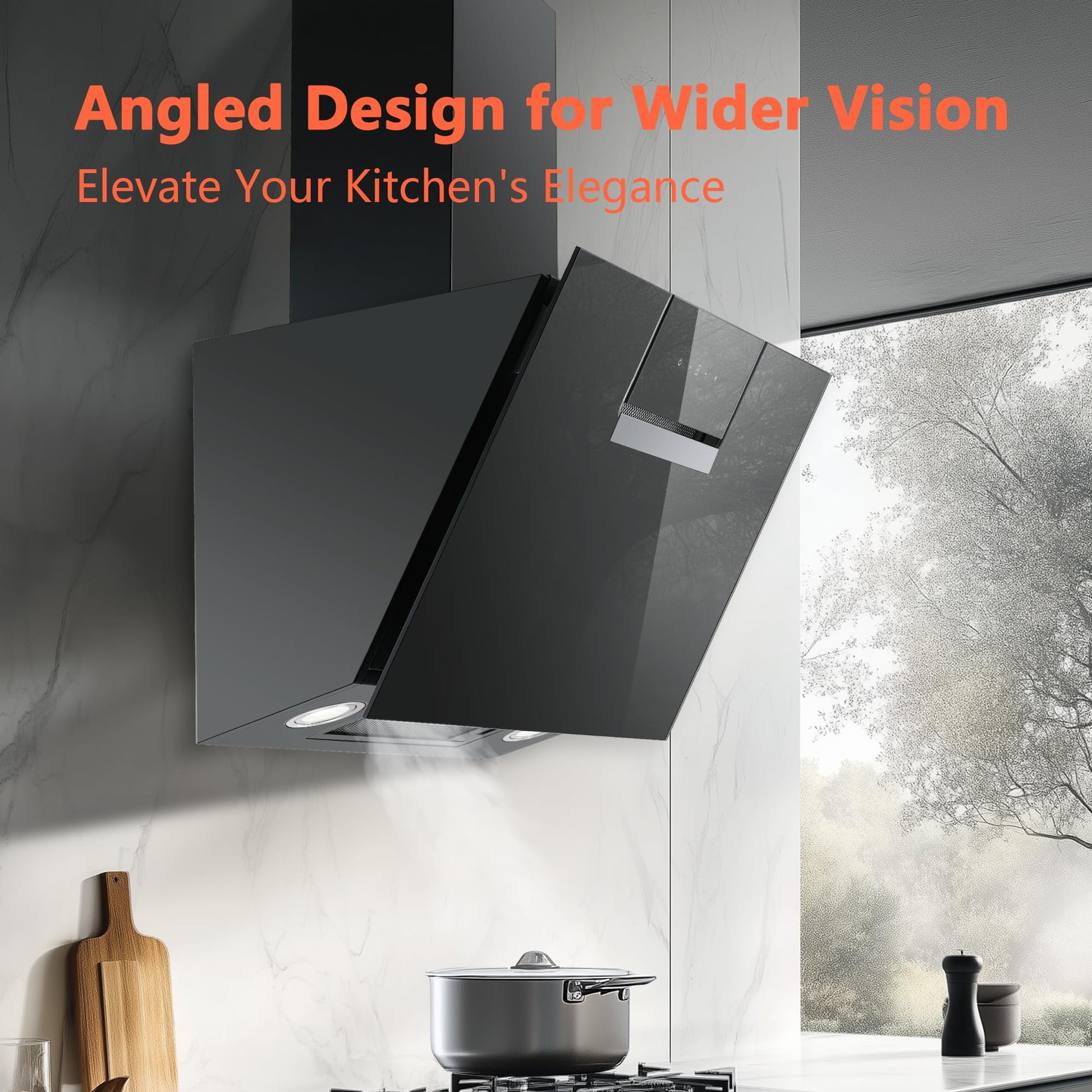 Das kopffreie, schräge Design bedeutet, dass Sie sich beim Kochen frei bewegen können, ohne sich den Kopf zu stoßen. Es sorgt für eine uneingeschränkte, gut ausgeleuchtete Sicht auf Ihre Töpfe und Pfannen und verleiht der Küche eine moderne Optik.