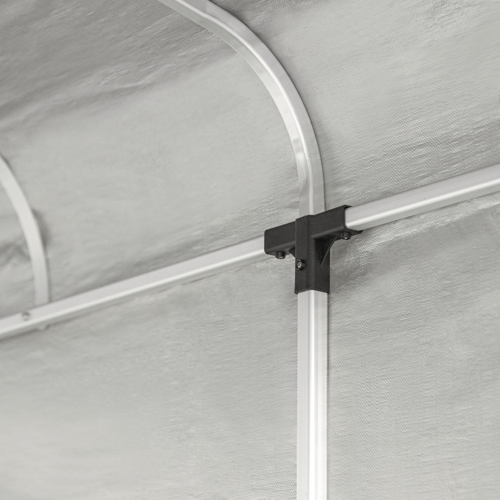- Stabiler Aufbau: Der Rahmen besteht aus robustem Aluminium, die Abdeckung aus einer widerstandsfähigen PE-Plane.