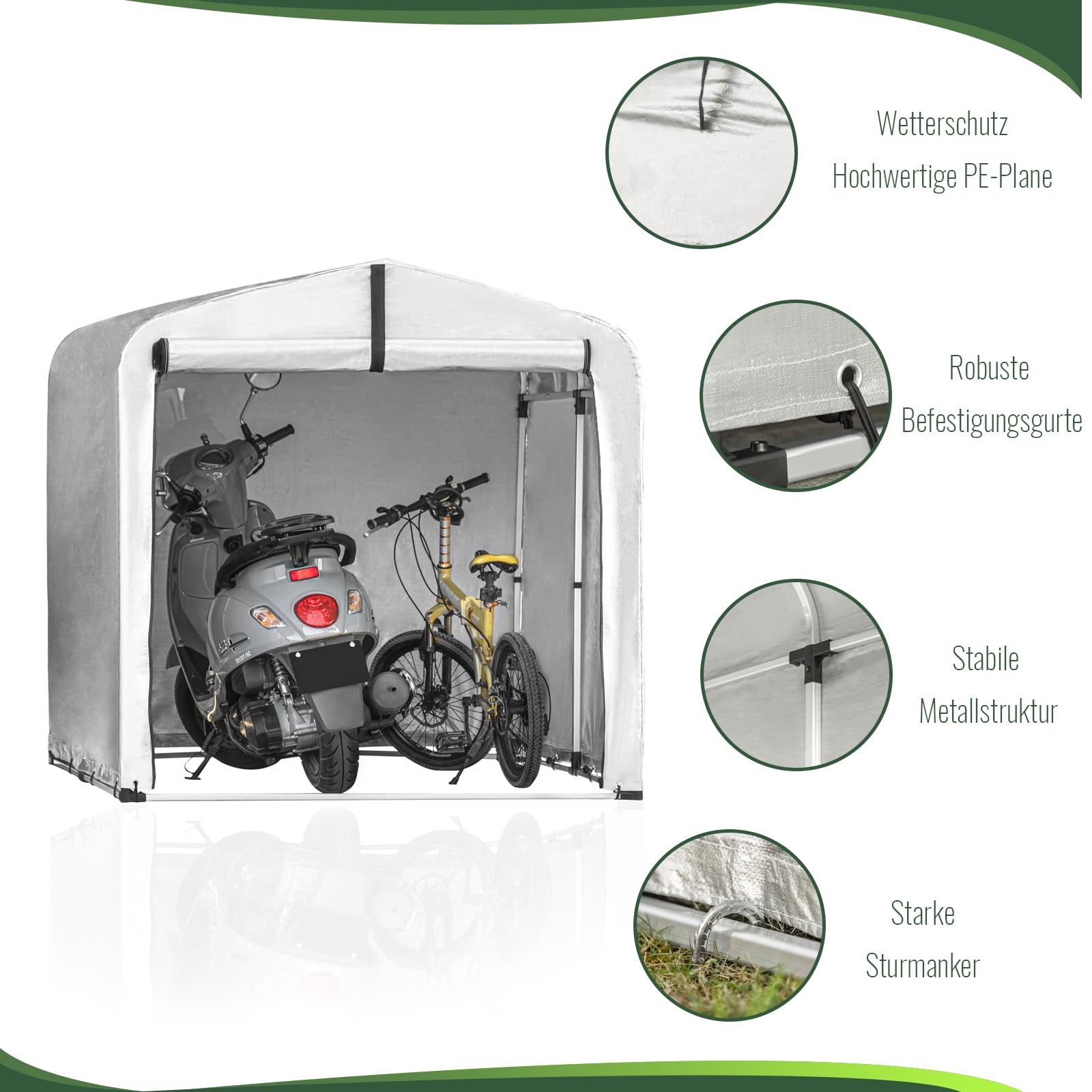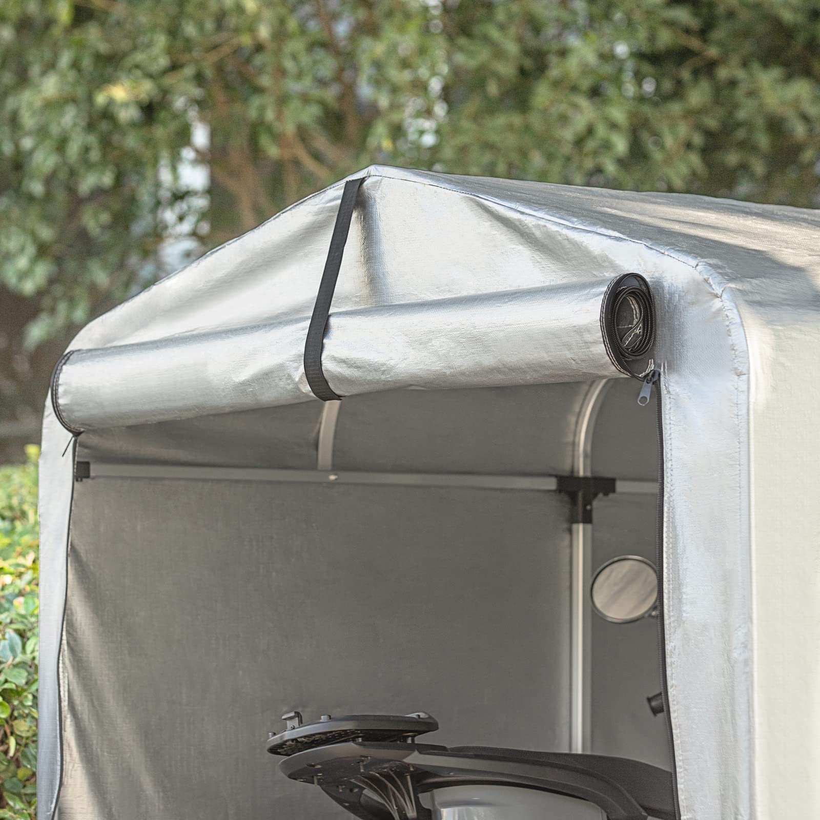 Dank der hochwertigen Materialien hält dieser Unterstand auch starkem Regen, Wind und intensiver UV-Strahlung stand. Er ist die perfekte wetterfeste Lösung, um Ihre Fahrzeuge und Geräte im Freien zu schützen, sei es im Garten, auf der Terrasse oder in der Auffahrt.