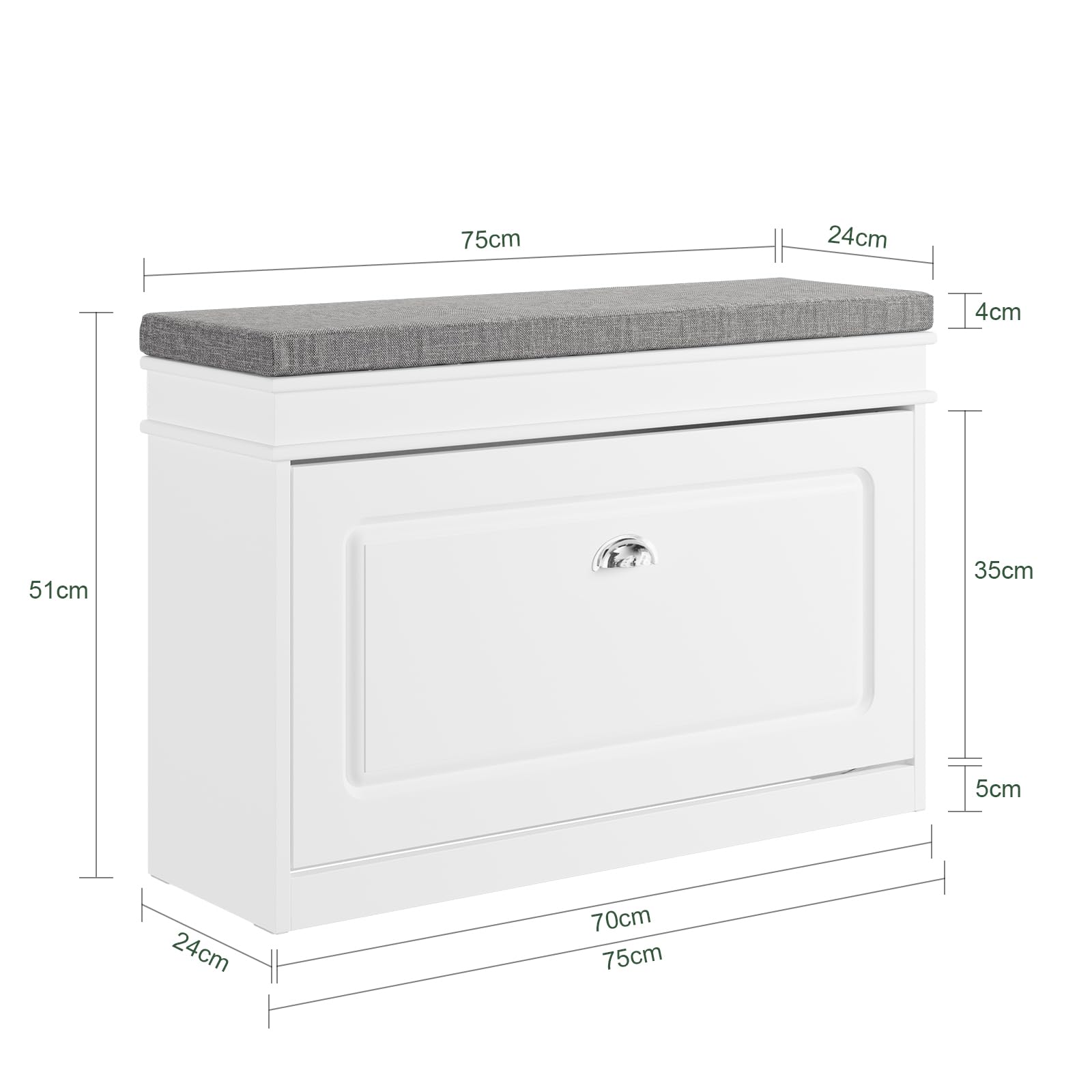 SoBuy FSR82-L-W schmale Schuhbank mit Sitzkissen Stauraum Weiss