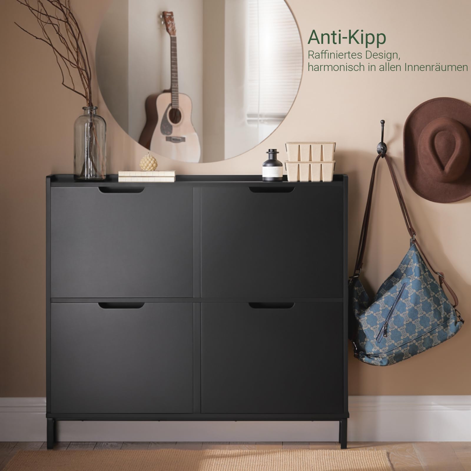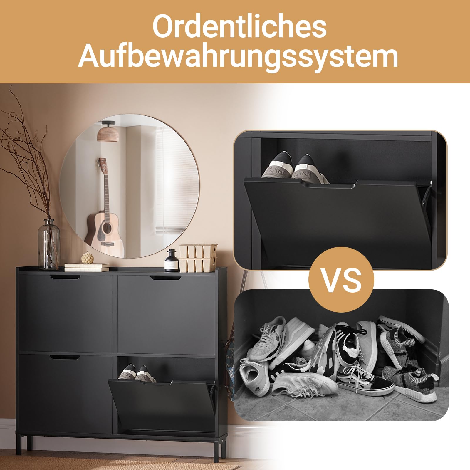 - Kapazität: Vier geräumige Klappfächer bieten Platz für bis zu 8 Paar Schuhe.