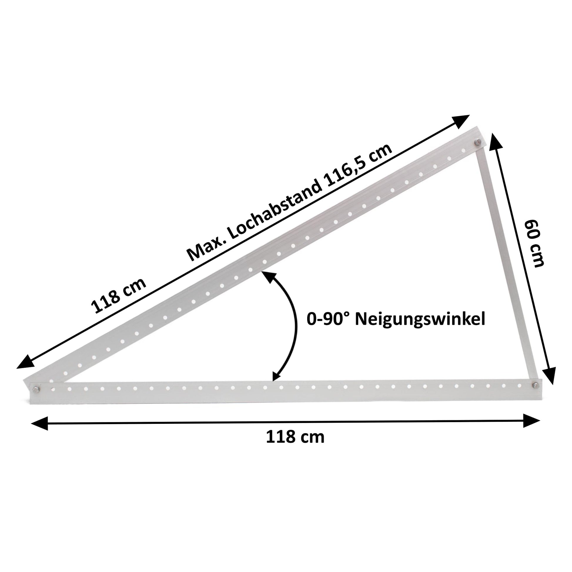 - Flexibler Winkel: Der Neigungswinkel ist zwischen 0° und 90° frei einstellbar, um die Module optimal zur Sonne auszurichten.