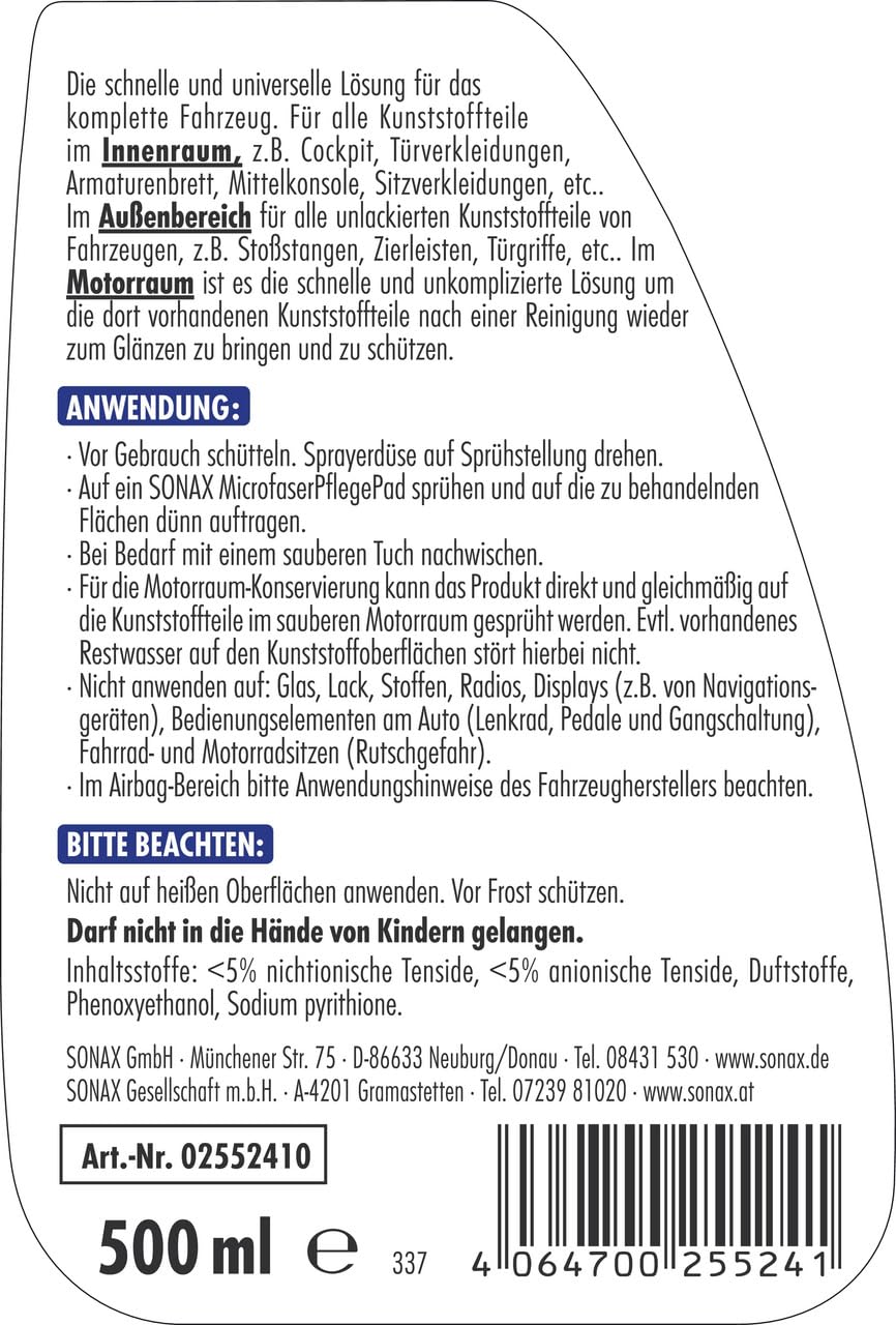 - Qualität "Made in Germany": Verlassen Sie sich auf die bewährte Markenqualität von SONAX für ein langanhaltend gepflegtes Fahrzeug.