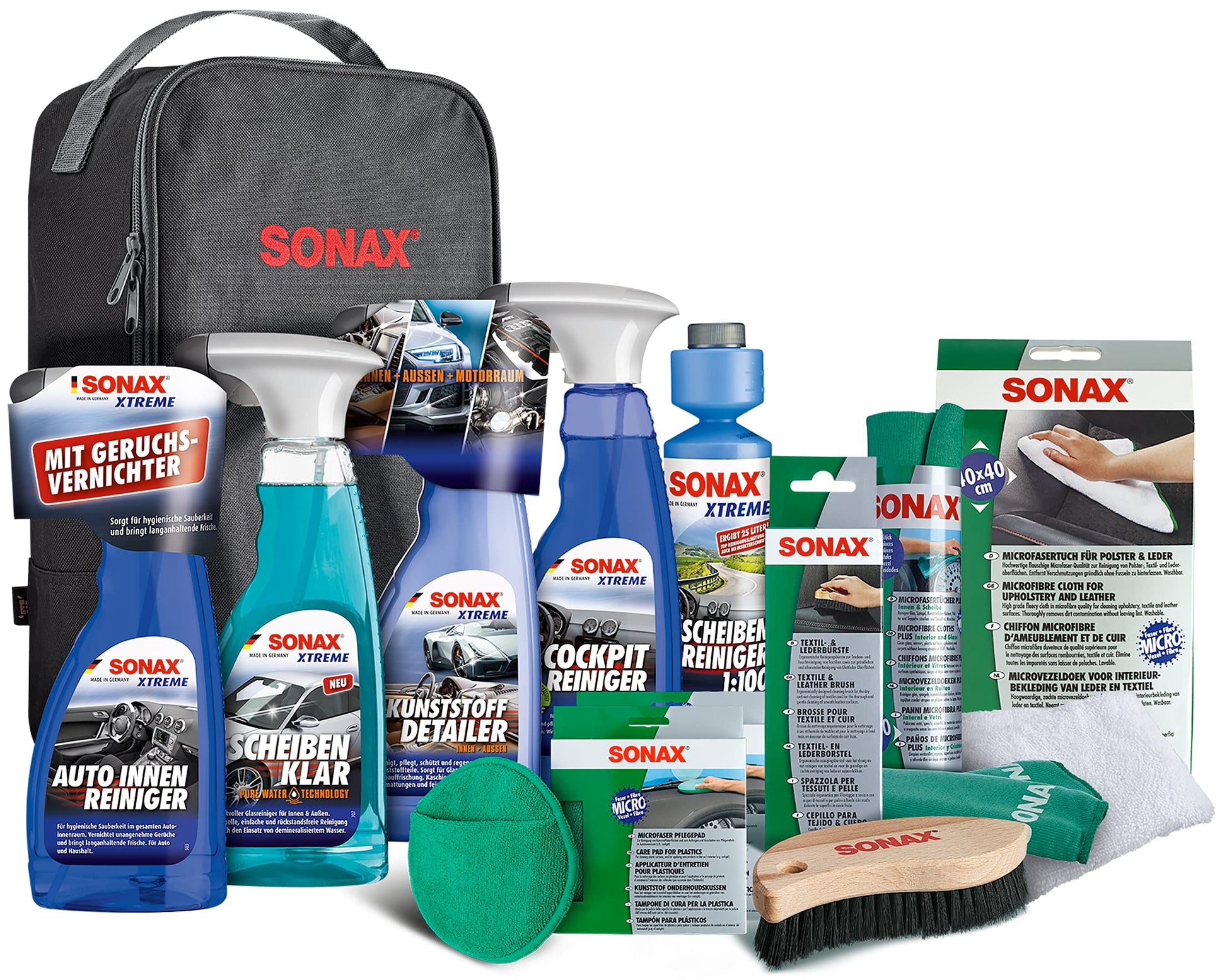 SONAX Innenraum+Scheibe-Set 11-tlg. & Microfaser Felgenbürste