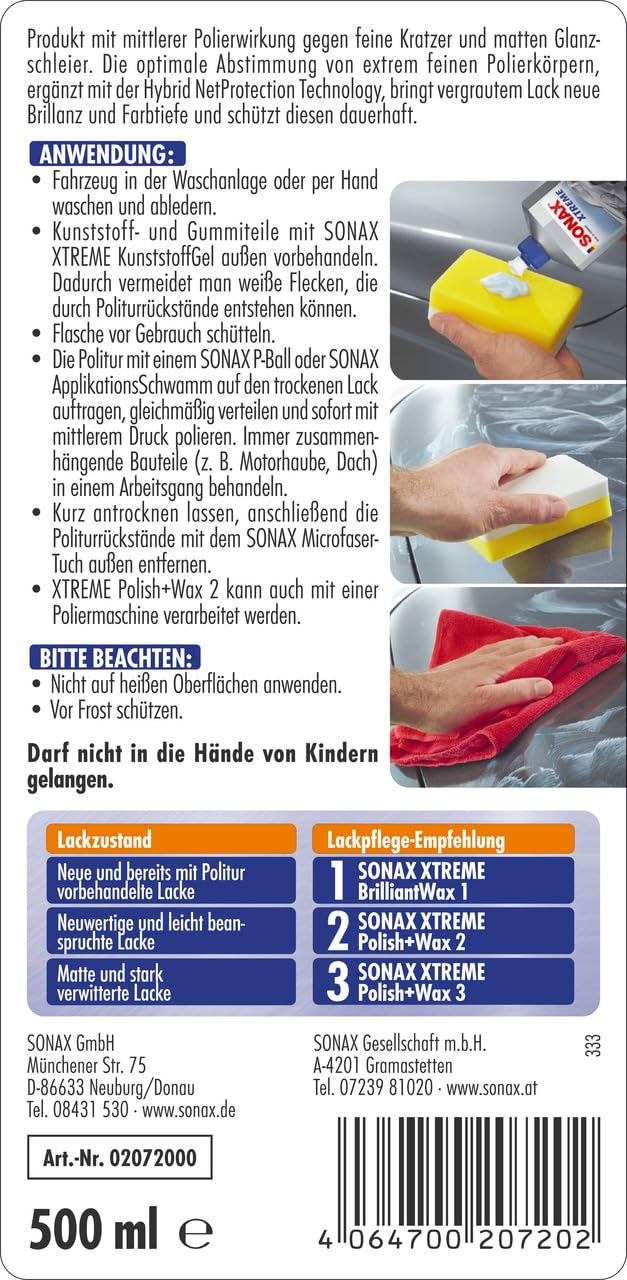 - Lackpflege-Produkte: 1x XTREME Shampoo 2 in 1 (1000 ml), 1x XTREME BrilliantWax 1 (500 ml) und 1x XTREME Polish+Wax 2 (500 ml) für eine tiefgehende Reinigung, Politur und langanhaltenden Schutz.