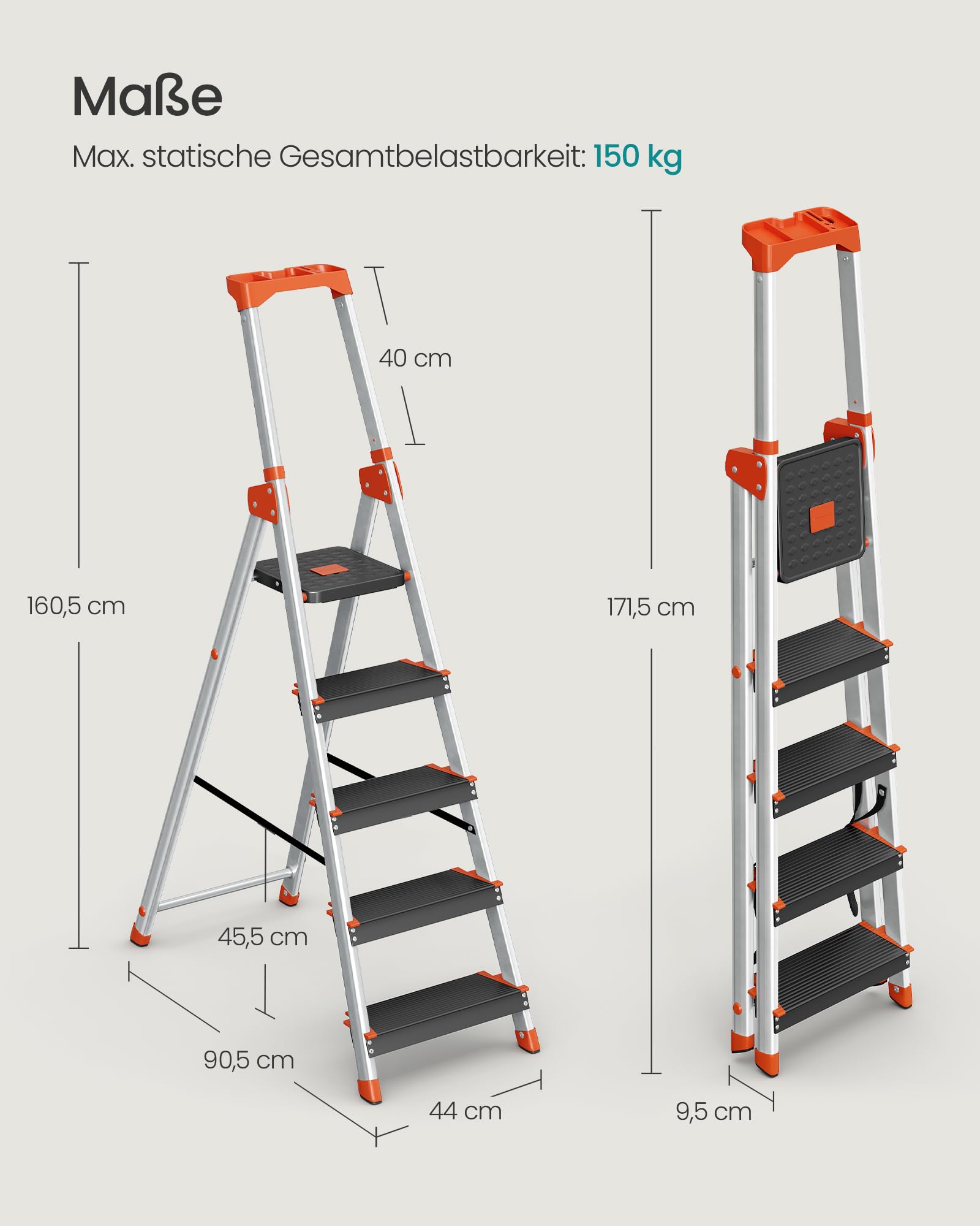 - Hohe Belastbarkeit: Die Konstruktion ist für ein Gewicht von bis zu 150 kg ausgelegt und bietet somit einen verlässlichen und stabilen Halt bei jeder Aufgabe.