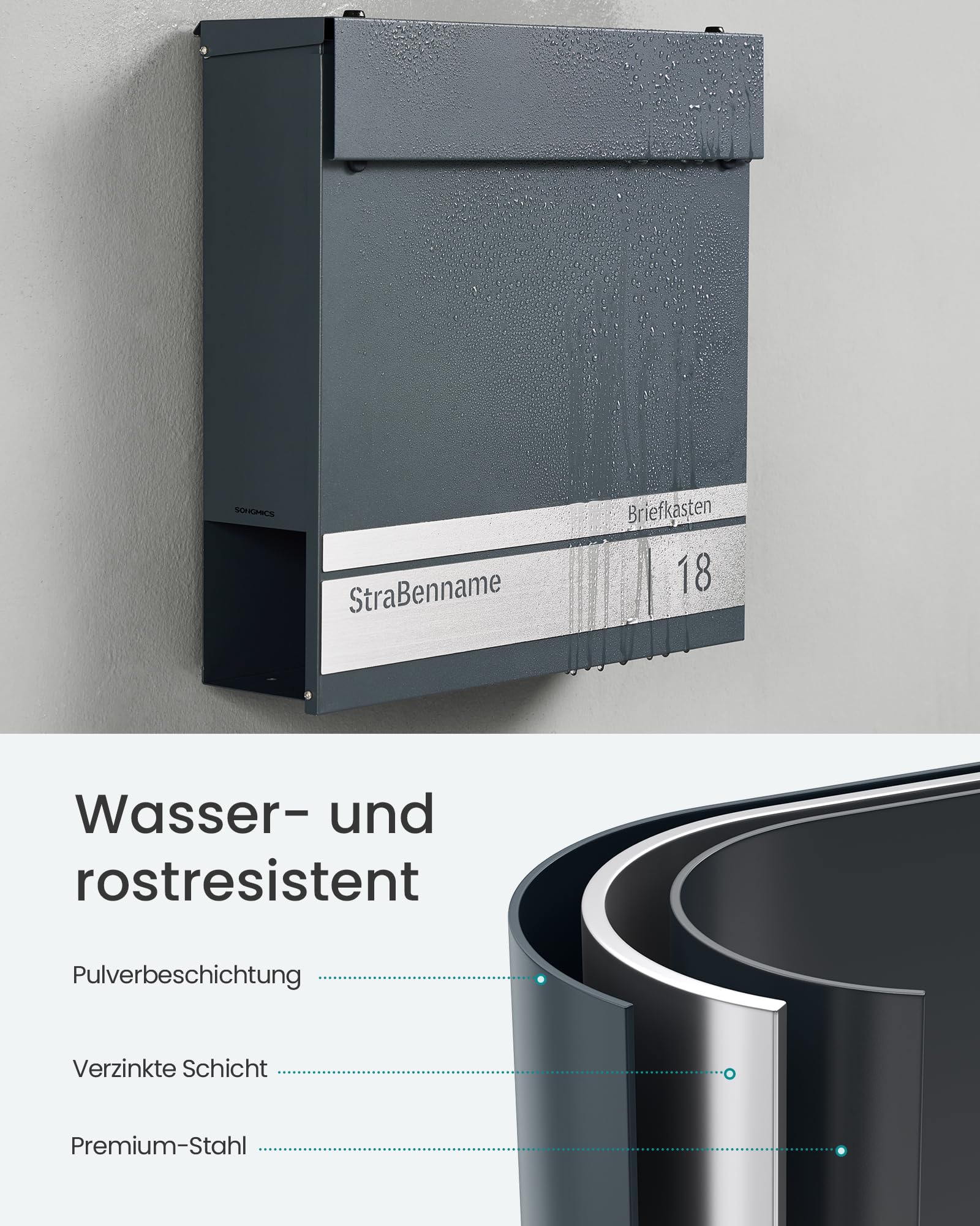SONGMICS GMB090G01 Briefkasten – anthrazitgrau personalisiert