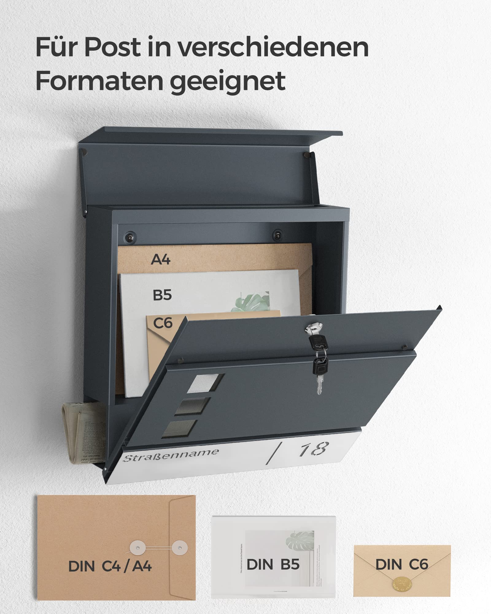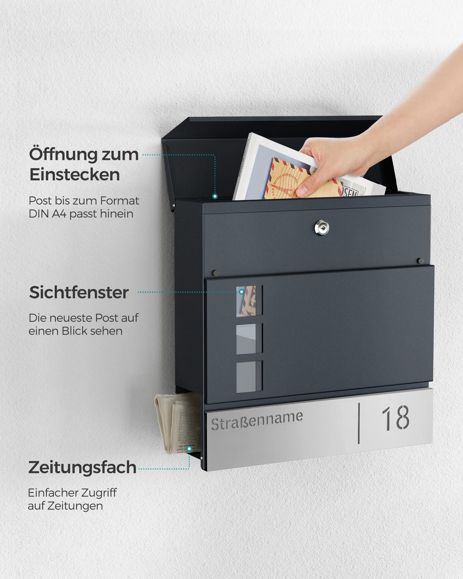 SONGMICS GMB081G01 Briefkasten - Anthrazit-Silbern, Personalisiert