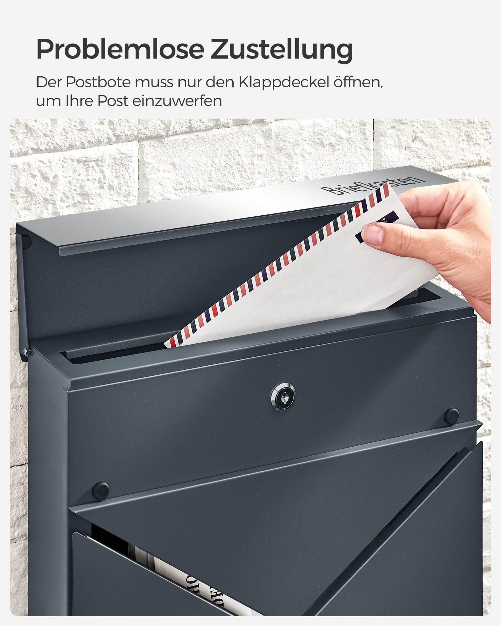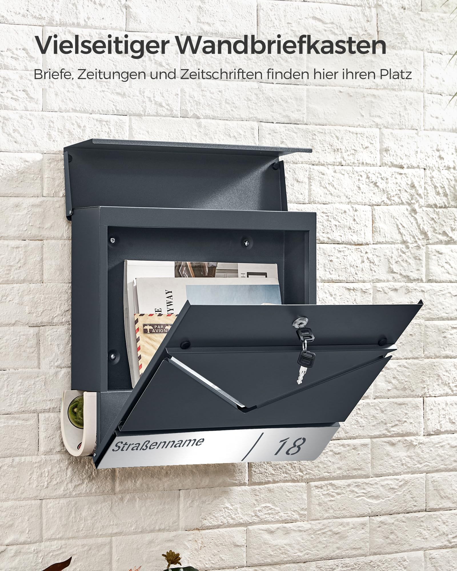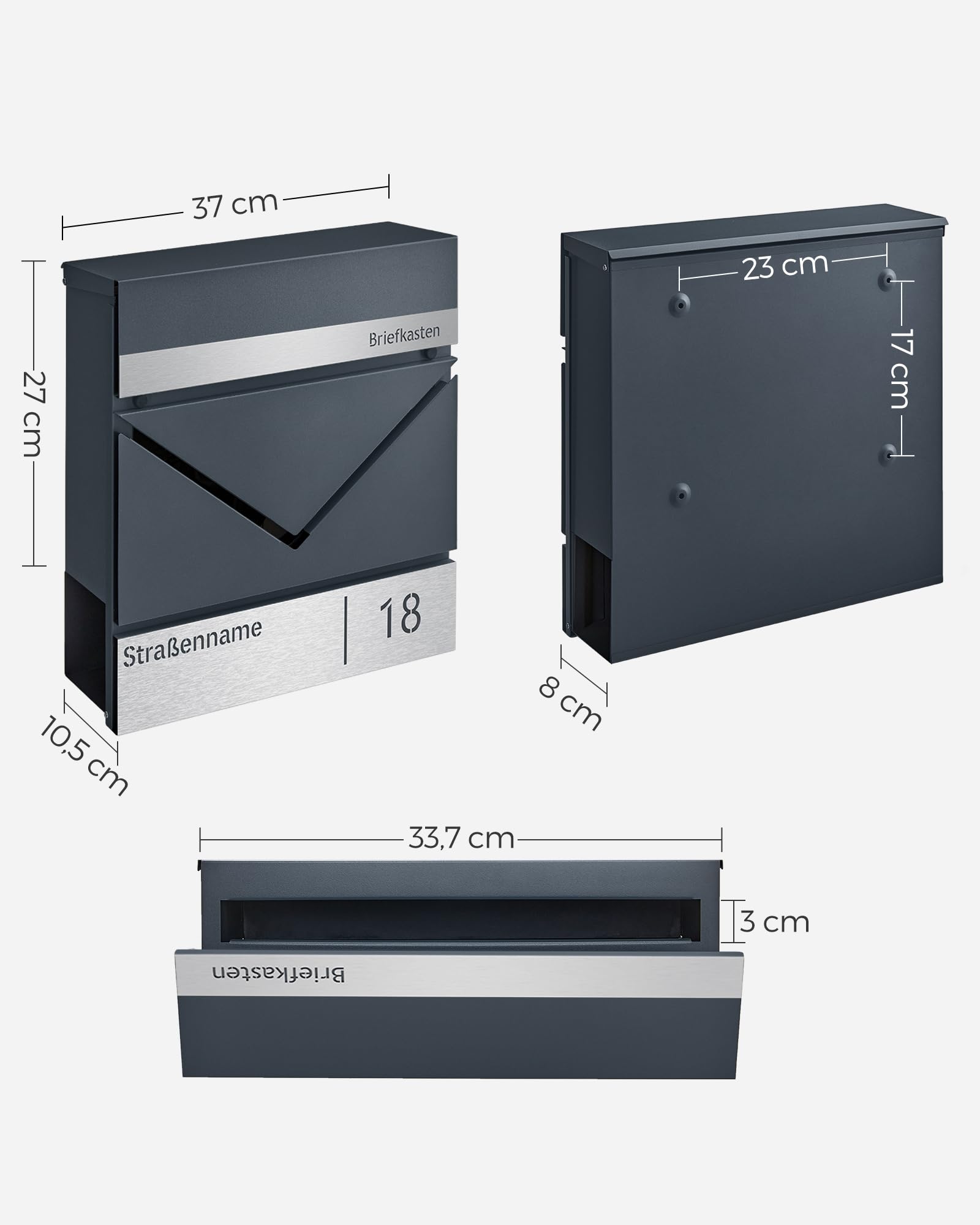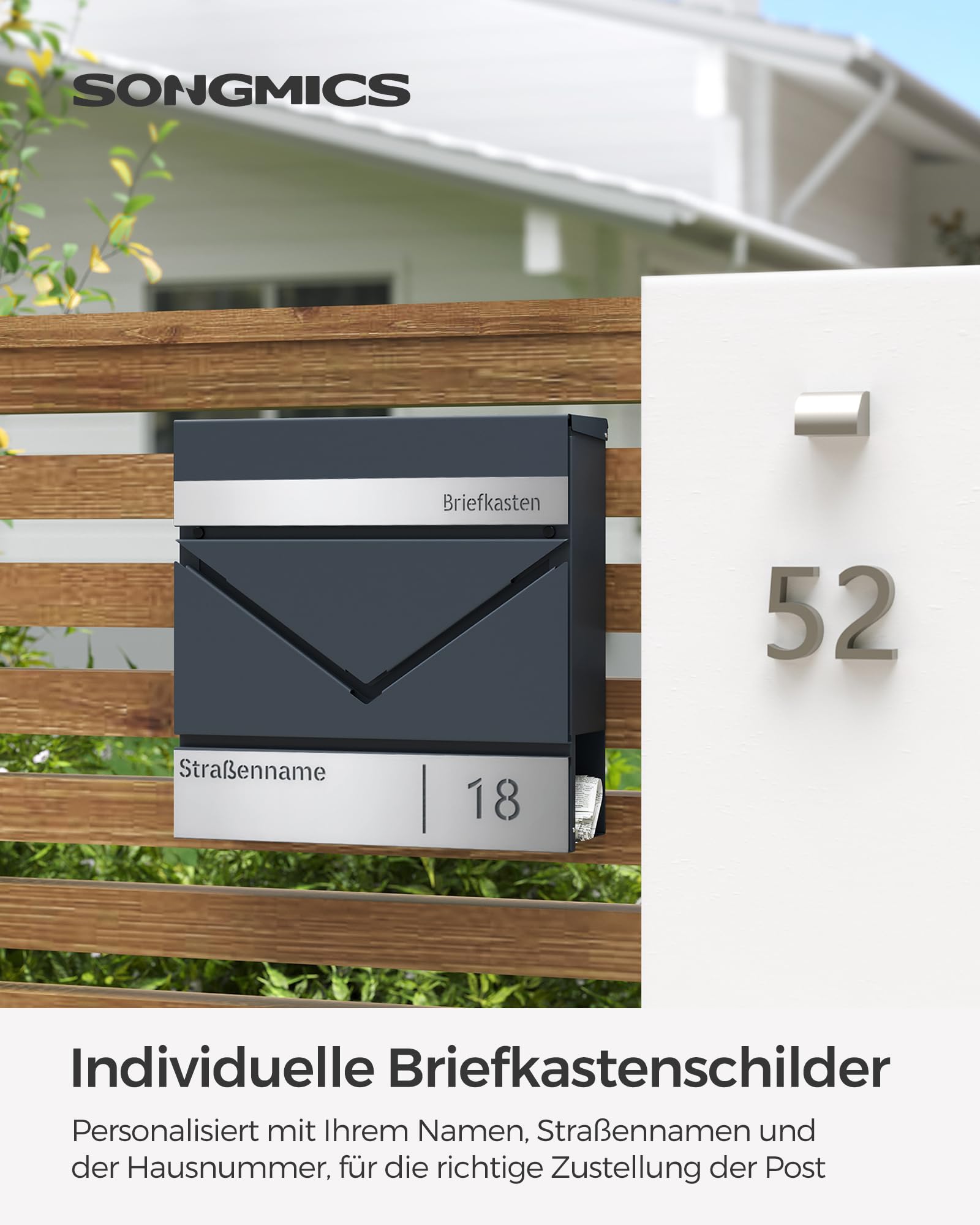 SONGMICS Briefkasten GMB080D01V1 - Personalisiert, Anthrazit-Silbern