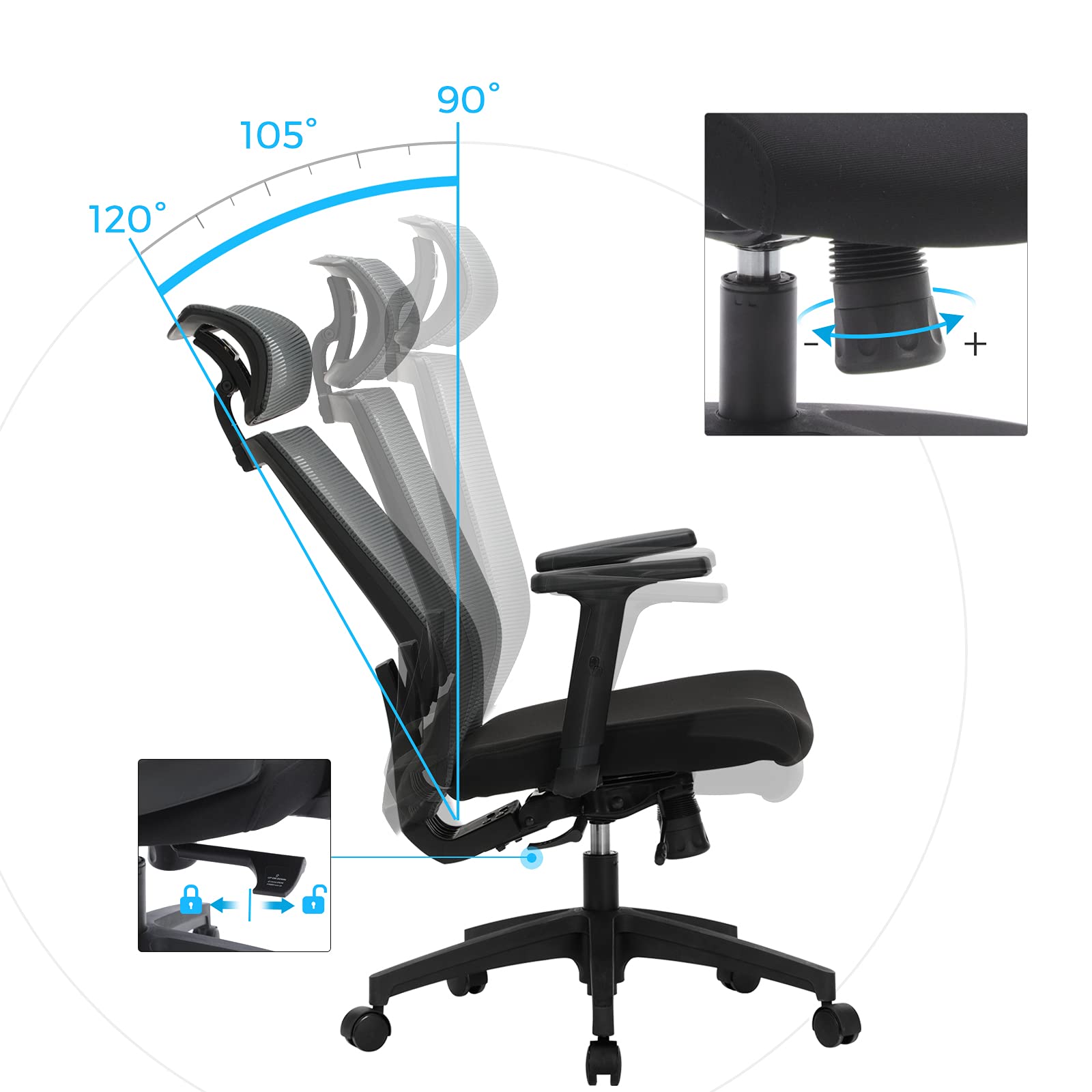 SONGMICS Bürostuhl Netzbespannung Ergonomisch Grau OBN55BG