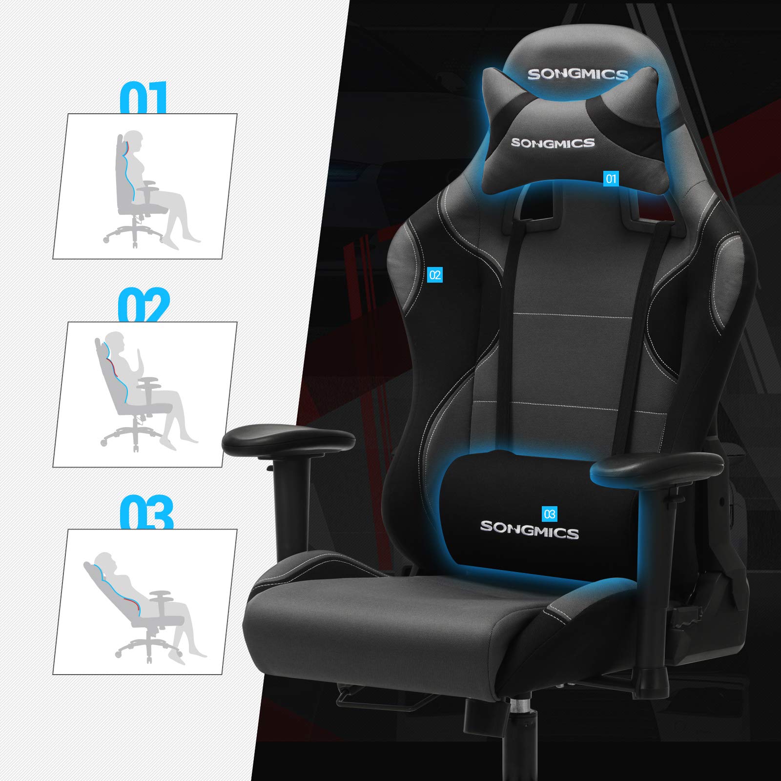 - Ergonomische Extras: Im Lieferumfang sind ein verstellbares Kopfkissen und ein Lendenkissen enthalten, um eine gesunde Sitzhaltung zu fördern.