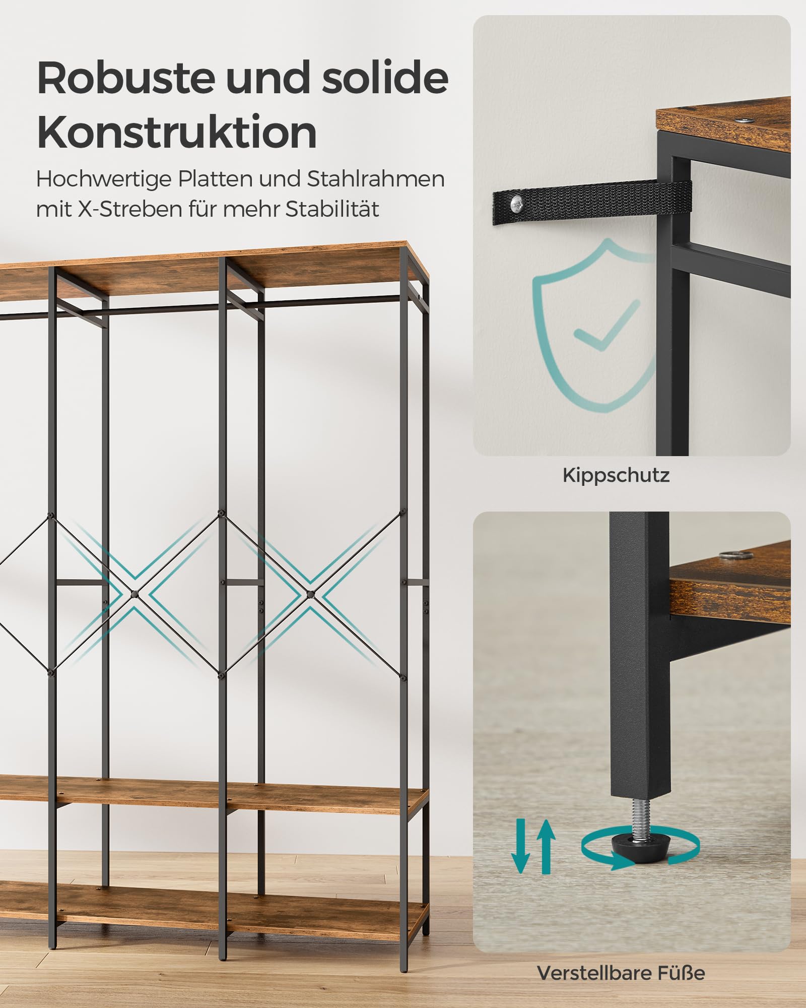 SONGMICS Offener Kleiderschrank RGR005B01 mit Ablagen, vintagebraun